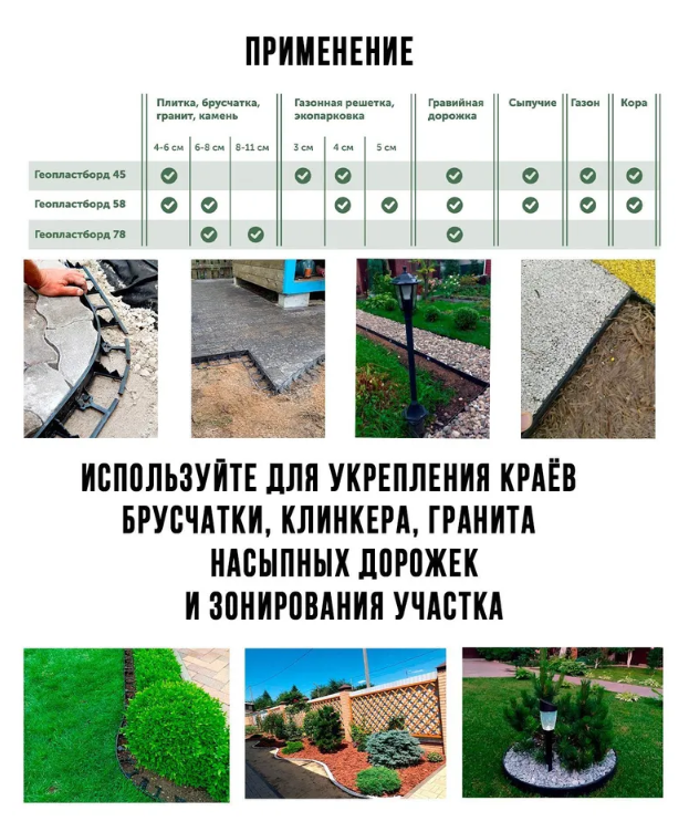 | Дополнительная информация | Бордюр изготовлен из высококачественного полипропилена. При надрезании перемычек легко принимает нужную форму. Нет необходимости в дополнительном нагреве. |
