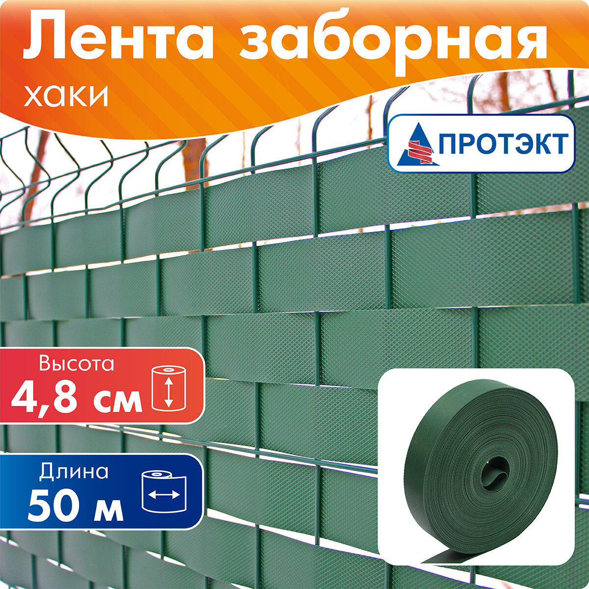 Купить Лента для забора "Протэкт", 2D/3D/рабица, 4,8х50м, цвет хаки