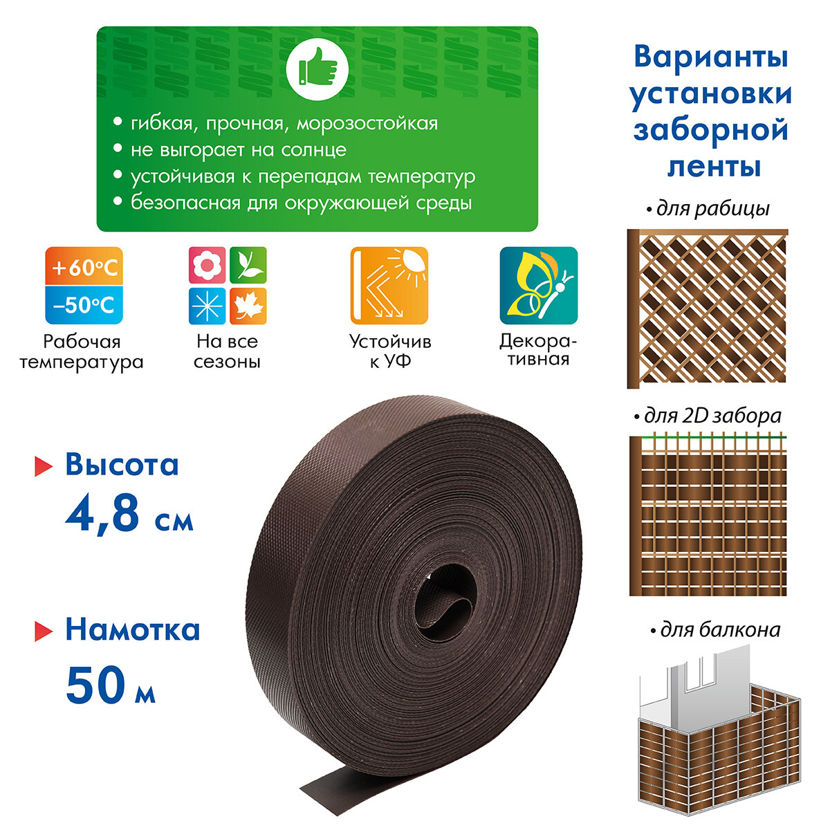 Ниже Вы можете прочитать отзывы на Лента для забора 2Д, 3Д, рабицы 4,8 см, 50 м, коричневая Протэкт, ознакомится с подробными характеристиками, посмотреть интересные обзоры и фотографии на Лента для забора 2Д, 3Д, рабицы 4,8 см, 50 м, коричневая Протэкт.