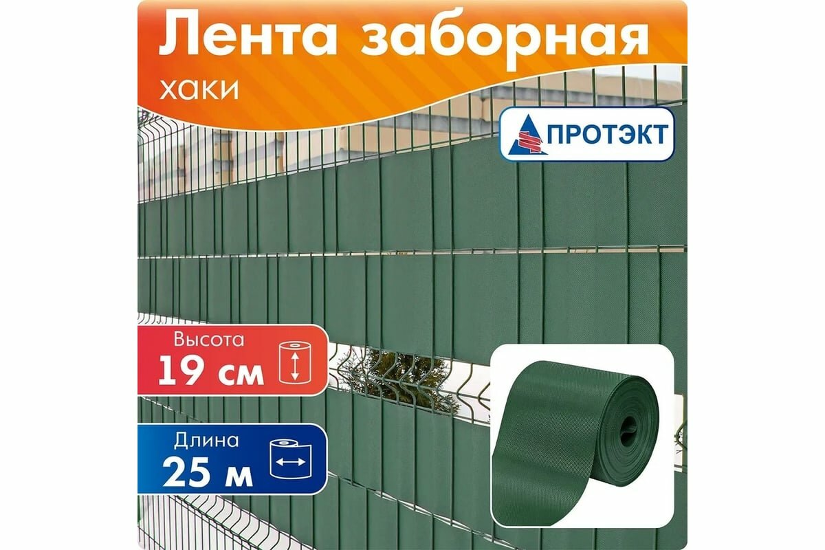 Лента для забора 2Д, 3Д, рабицы 19 см, 25 м, хаки Протэкт