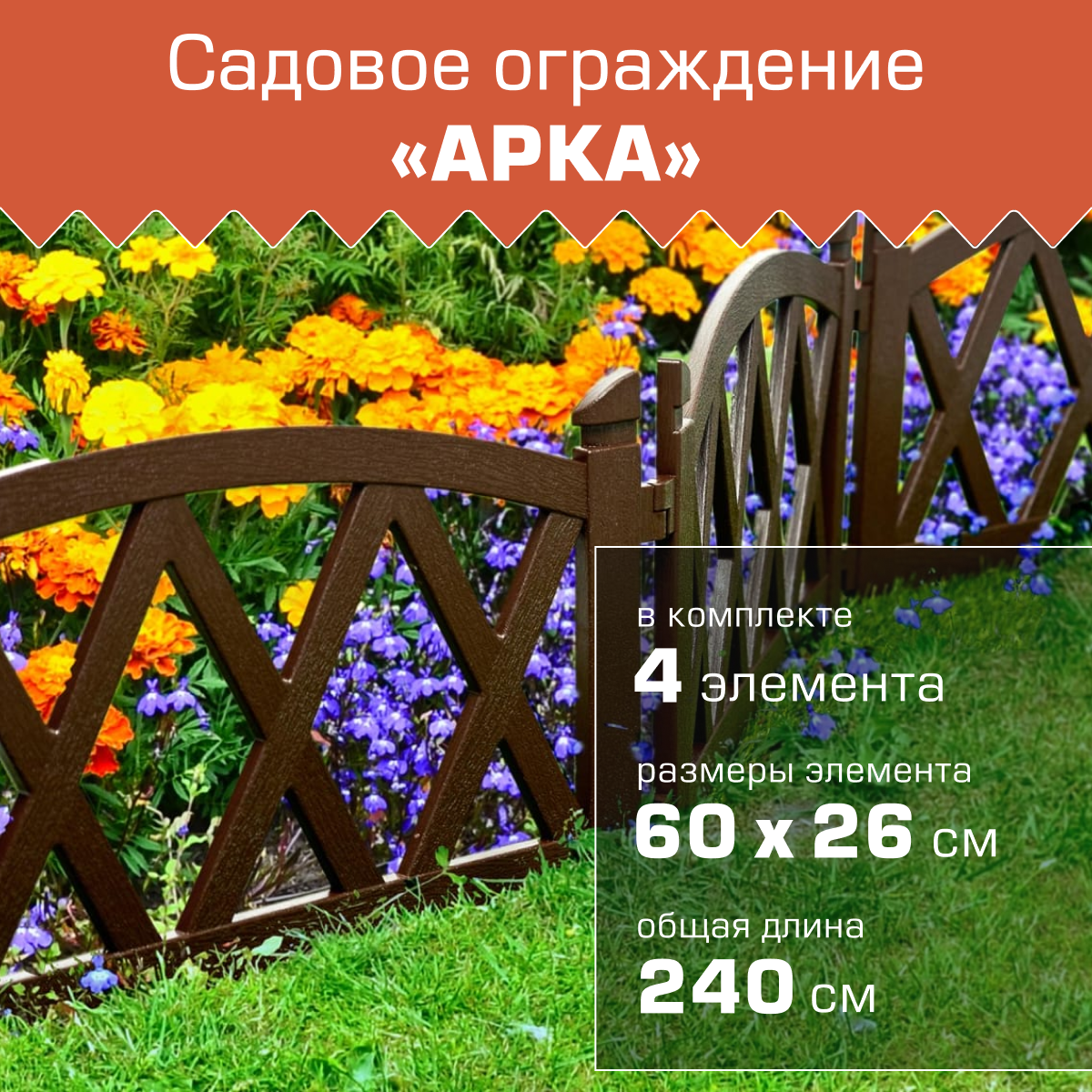 Забор декоративный МастерСад Арка коричневый 2,4м / бордюр для сада и огорода / Ограждение для клумб и грядок