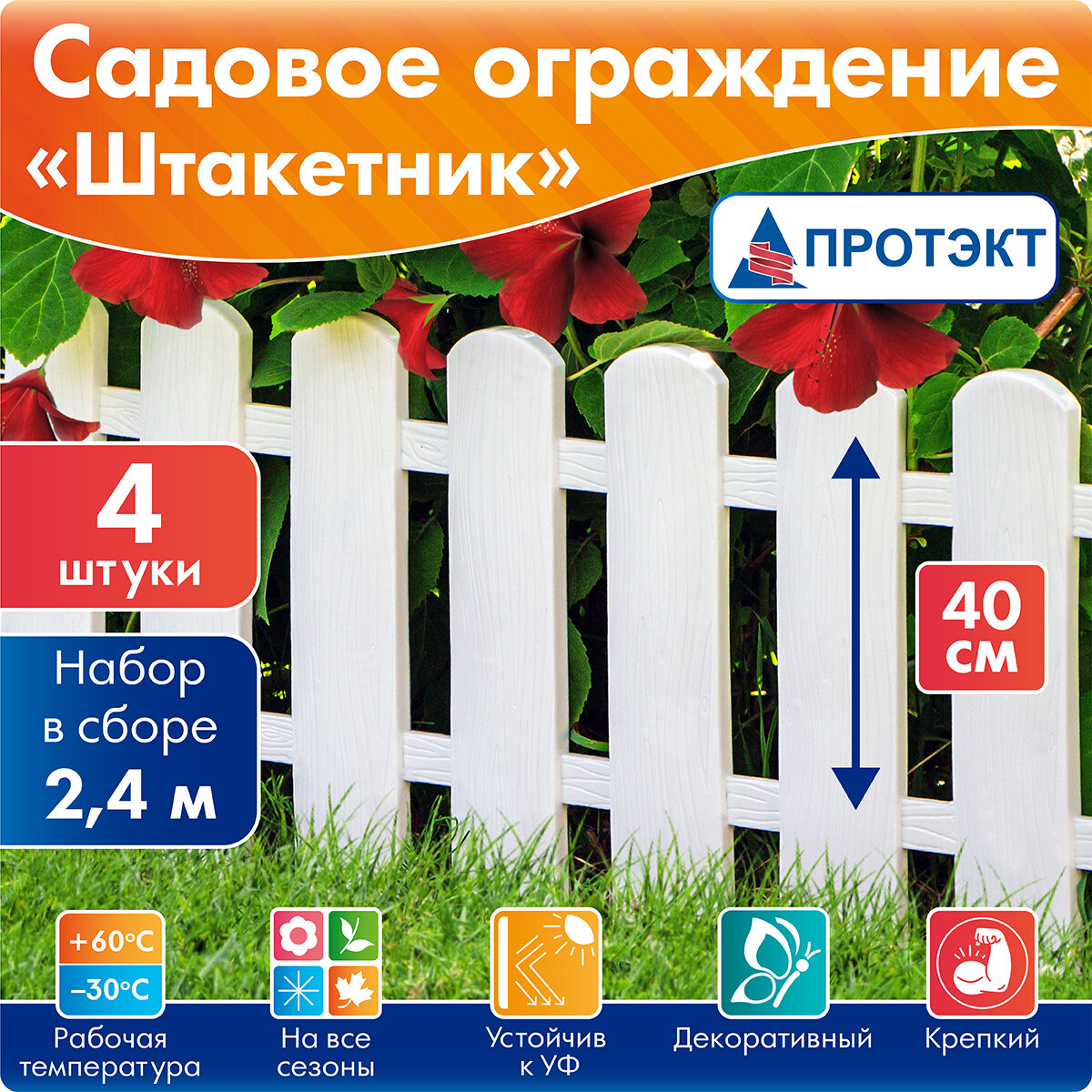 Купить Заборчик садовый декоративный Штакетник, длина в сборе 2,4 м, белый Протэкт