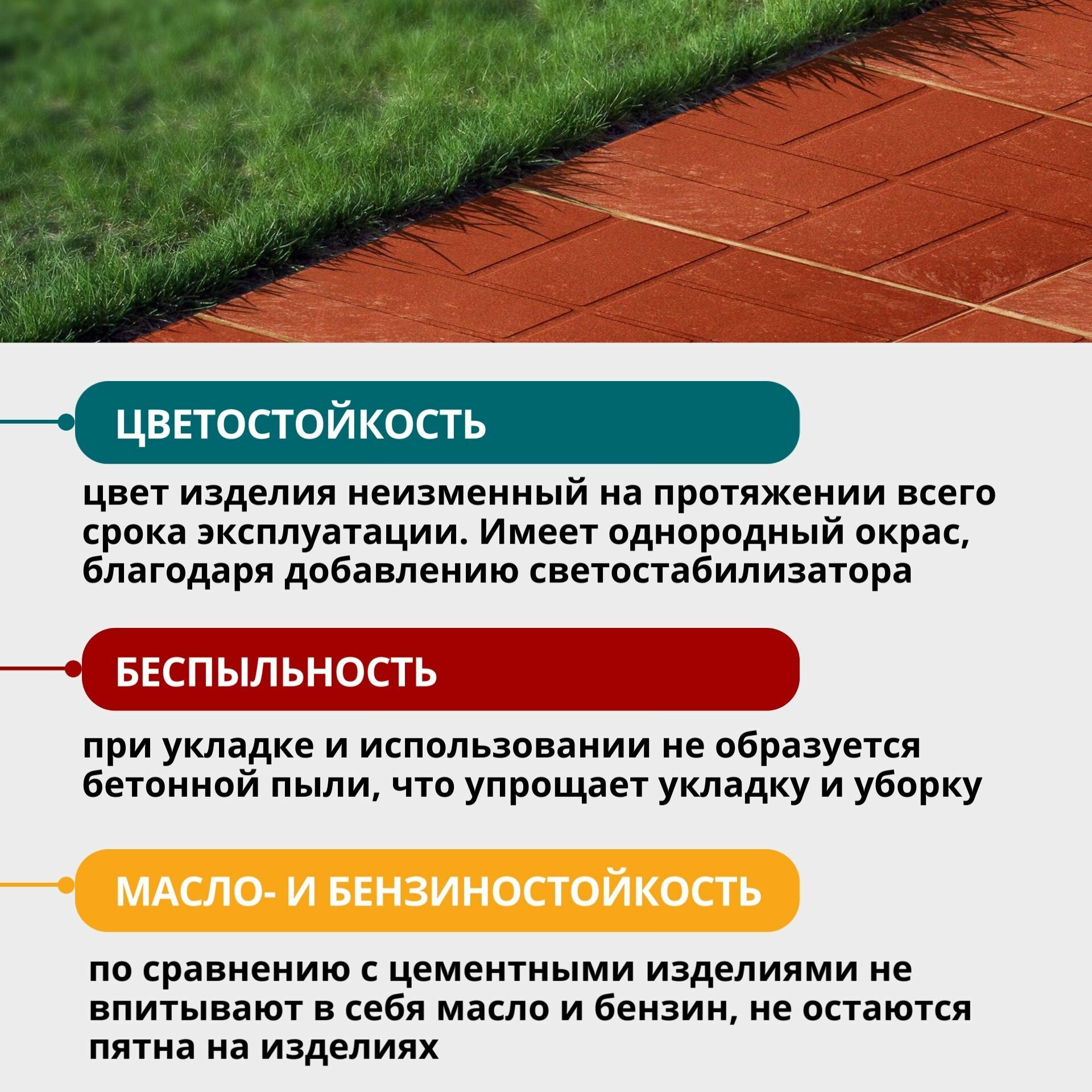 Ниже Вы можете прочитать отзывы на Плитка садовая полимерно-песчаная, 25х25х2 см, зеленая, 8 ш., ознакомится с подробными характеристиками, посмотреть интересные обзоры и фотографии на Плитка садовая полимерно-песчаная, 25х25х2 см, зеленая, 8 ш..