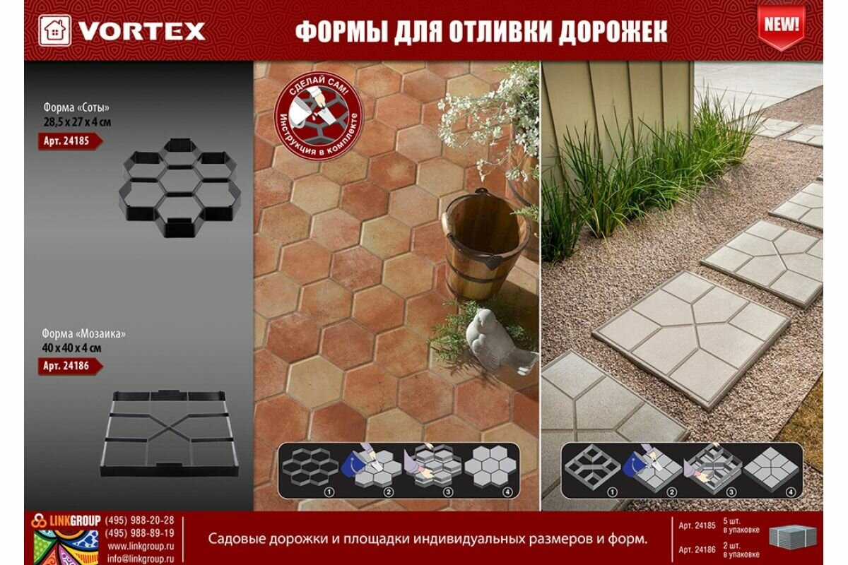 Форма для отливки садовых дорожек "Мозаика" 40*40*4см VORTEX интересное: