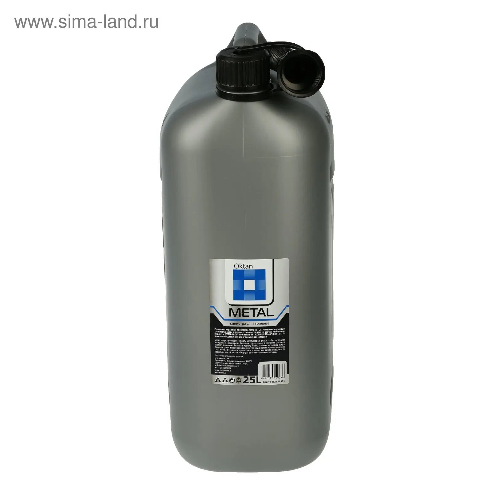 Канистра ГСМ Oktan METAL, 25 л, пластиковая, серая