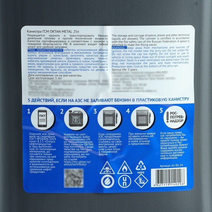СохранитьКанистра ГСМ Oktan METAL, 25 л, пластиковая, серая 2578013 . интересное: