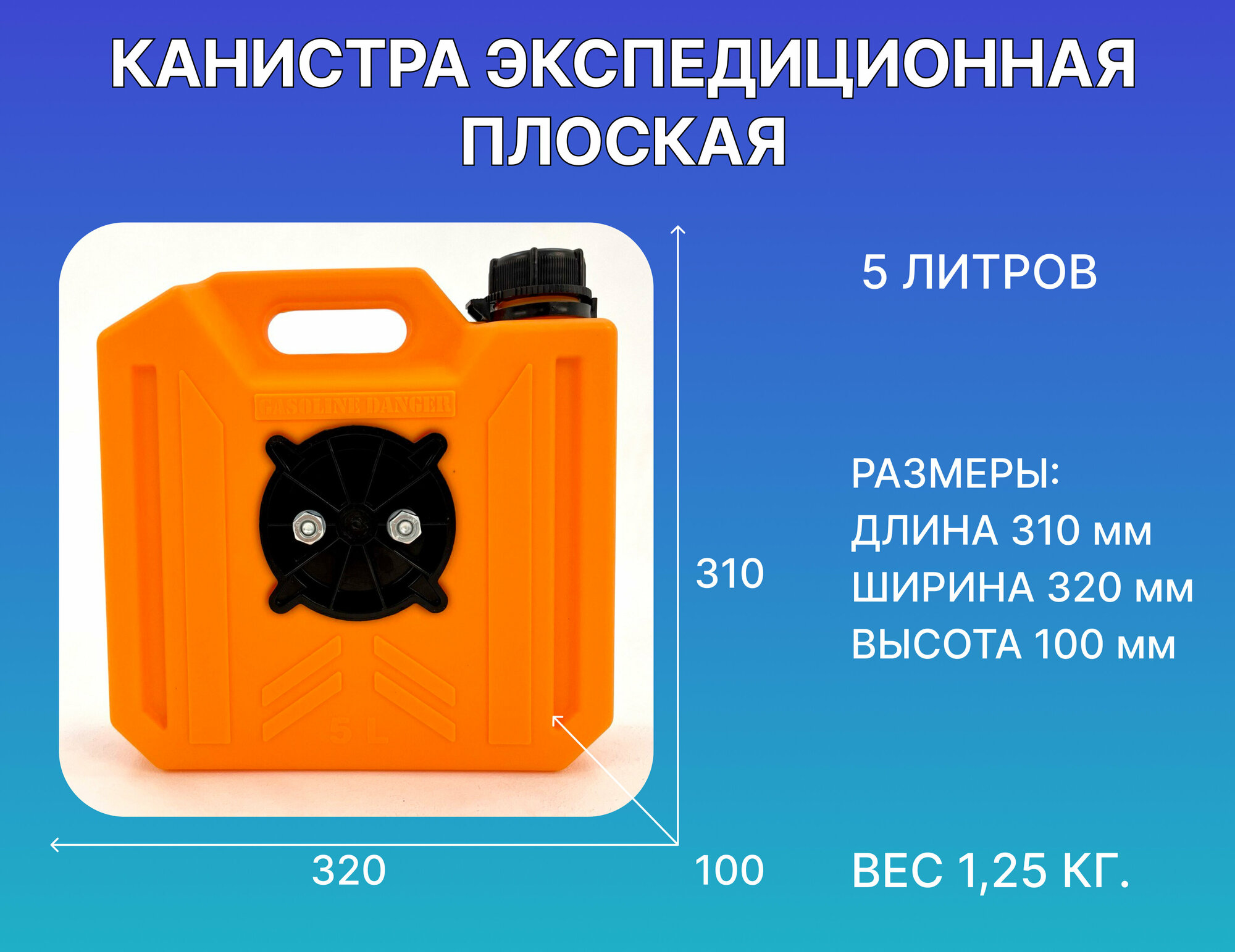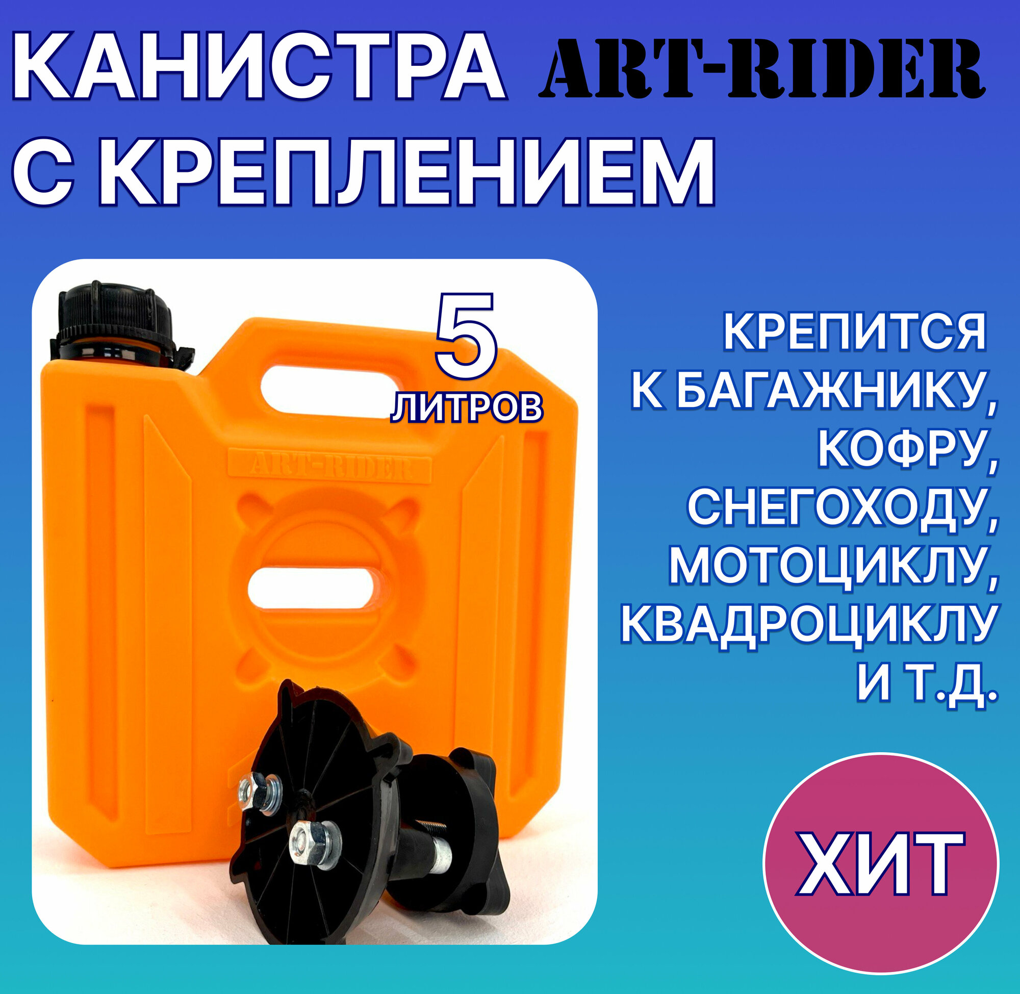 Канистра для бензина ART-RIDER 5 л, канистра для воды, канистра экспедиционная, с креплением в комплекте, синяя