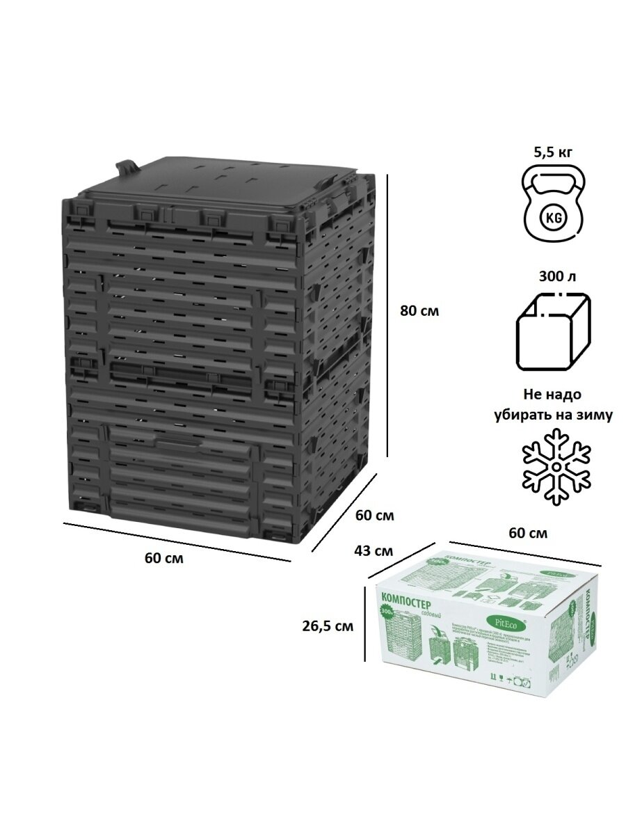 Компостер Piteco с крышкой 300 л чёрный KSI-К1130 интересное: