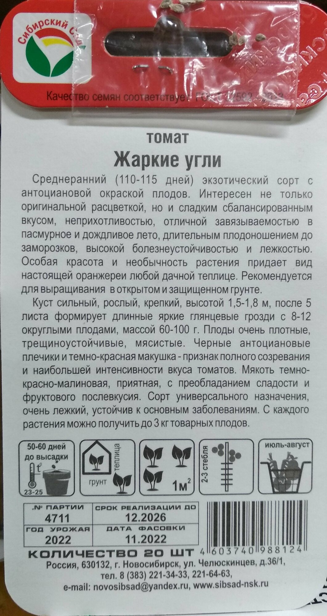 Ниже Вы можете прочитать отзывы на Томат Жаркие угли 20шт Индет Ср (Сибирский Сад), ознакомится с подробными характеристиками, посмотреть интересные обзоры и фотографии на Томат Жаркие угли 20шт Индет Ср (Сибирский Сад).