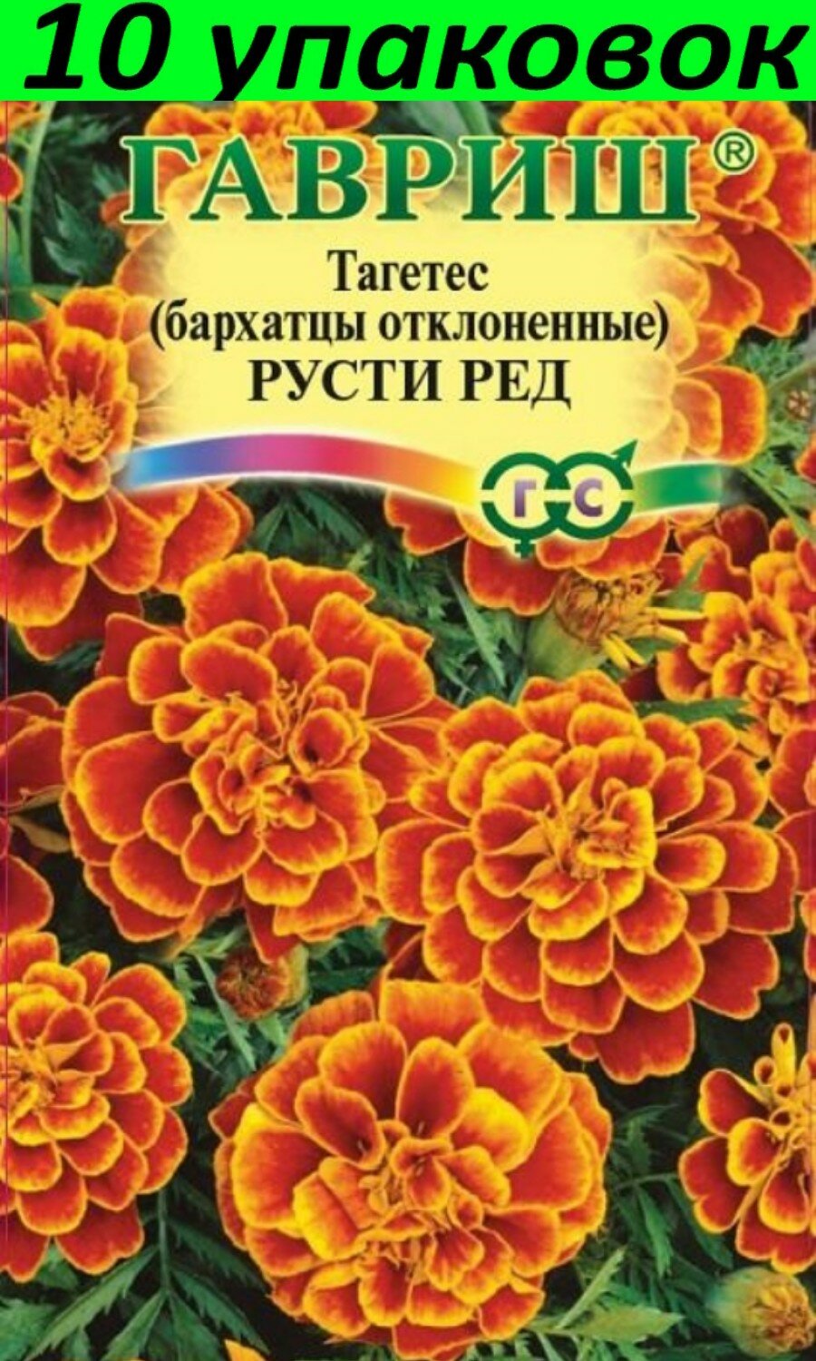 Семена Бархатцы отклоненные (тагетес) Русти Ред, 0,3г, Гавриш, Цветочная коллекция, 10 пакетиков
