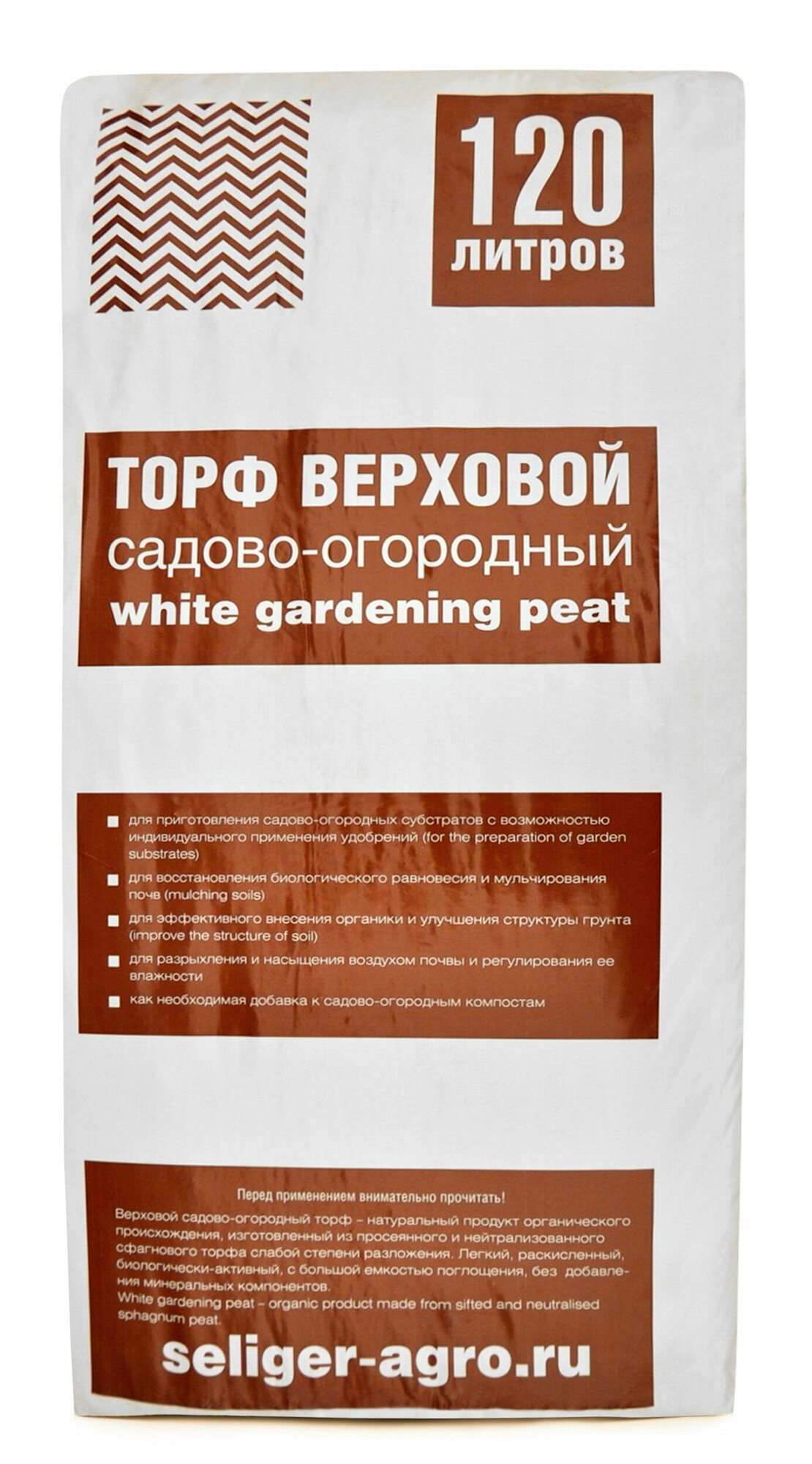 Торф верховой садово-огородный Селигер-Агро 120 л, универсальный