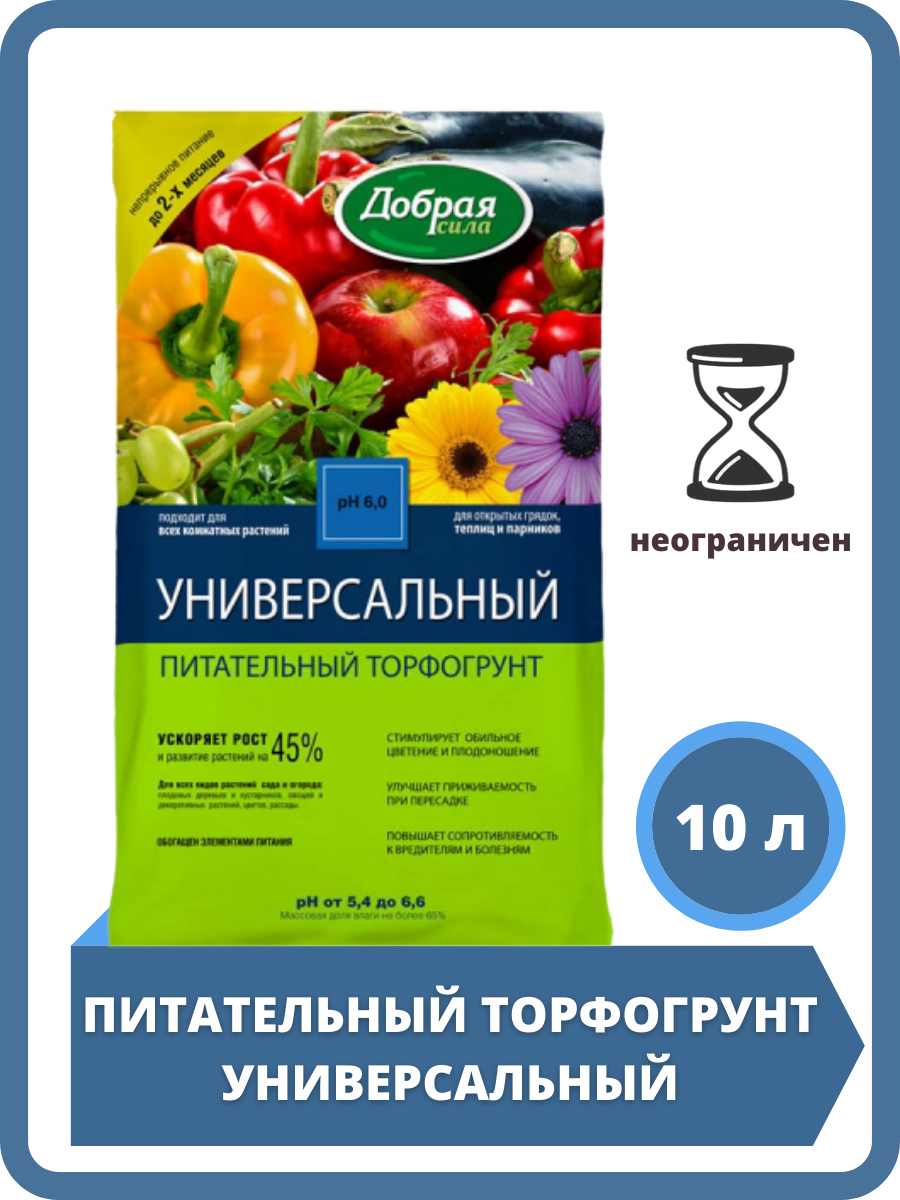 Грунт (тофогрунт) "Добрая сила", универсальный, объем: 10 литров, пакет.