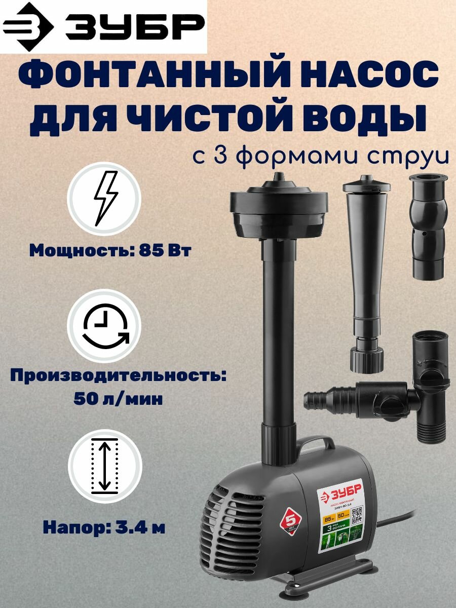 ЗУБР 85 Вт, 50 л/мин, насос фонтанный ЗНФЧ-50-3.4 интересное: