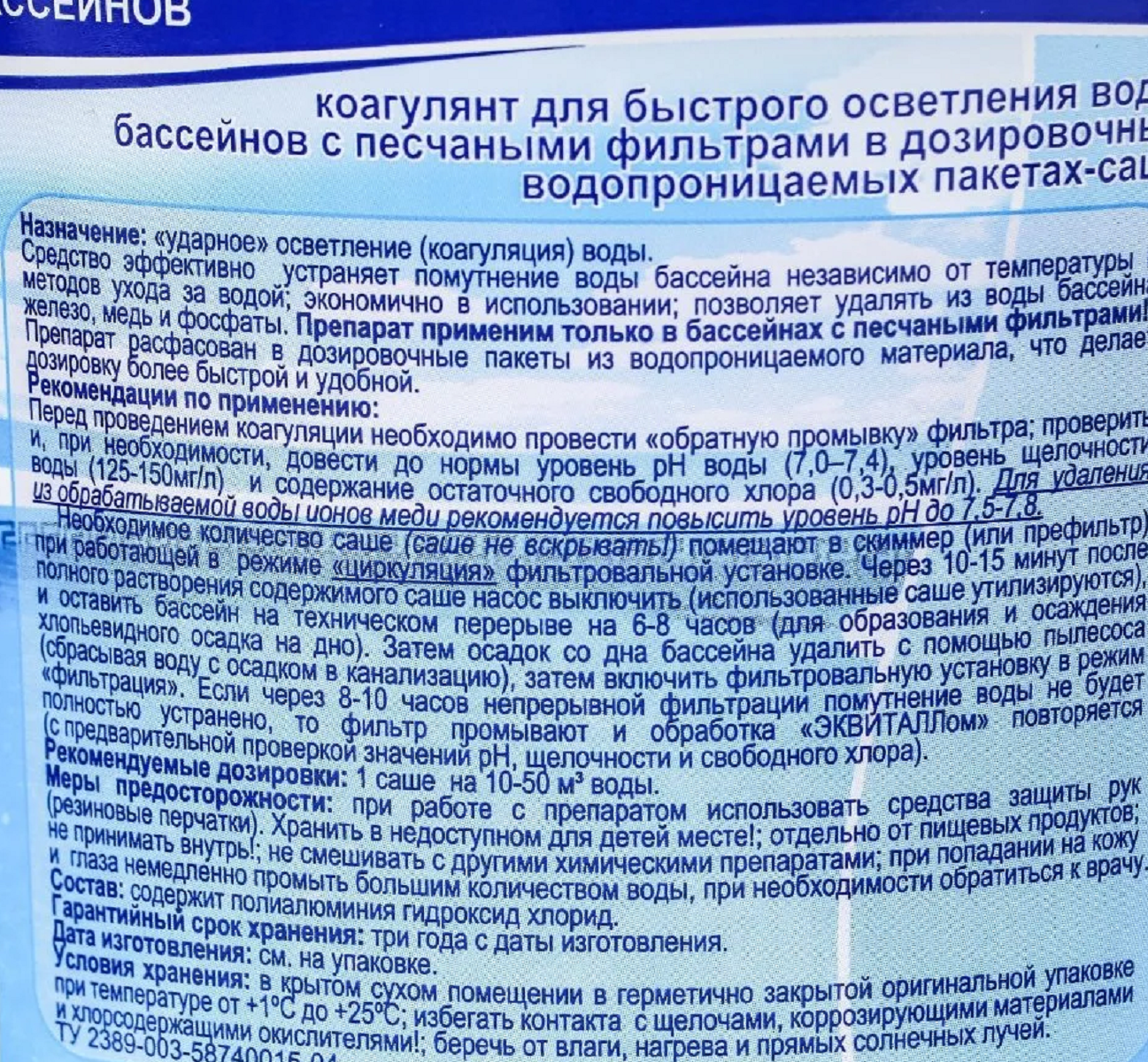 Коагулянт пролонгированного действия для бассейнов Эквиталл в картриджах 2 кг