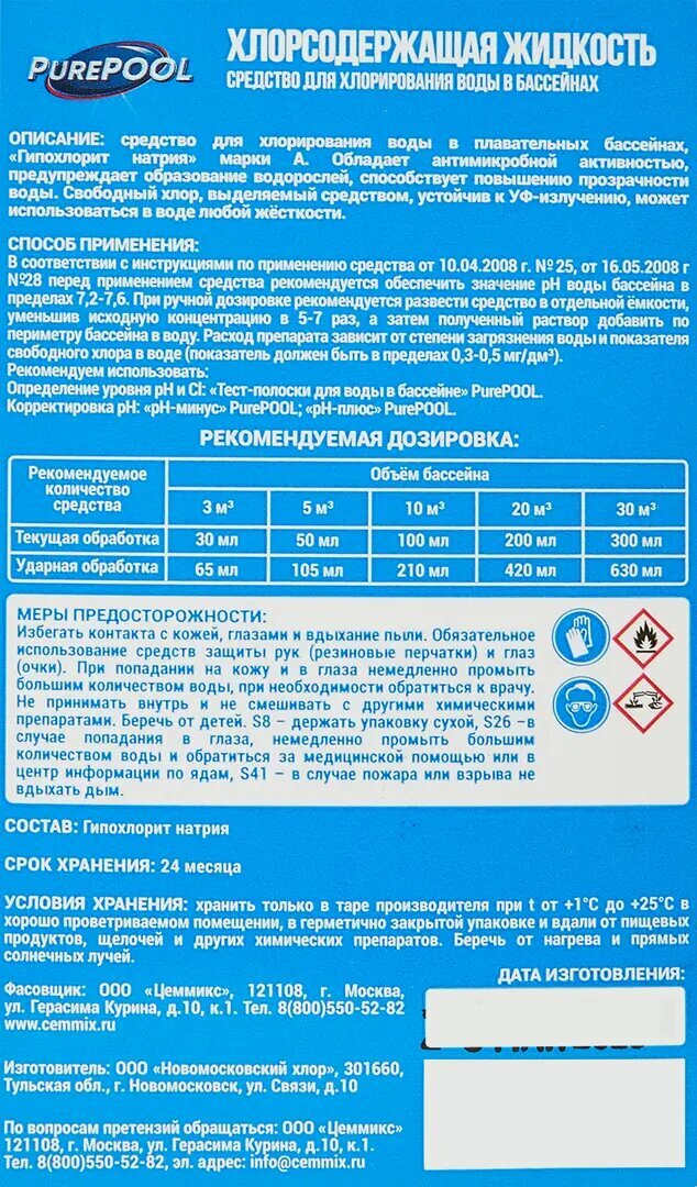 | С хлором | есть |