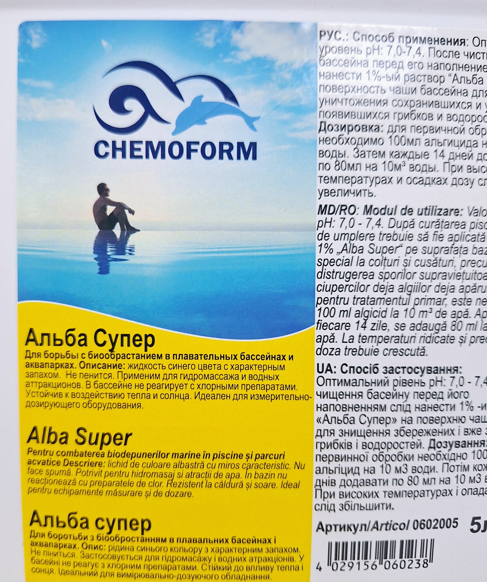 Средство против водорослей, бактерий и грибков в бассейне Альба Супер 28% Chemoform,5л.(непенящийся)