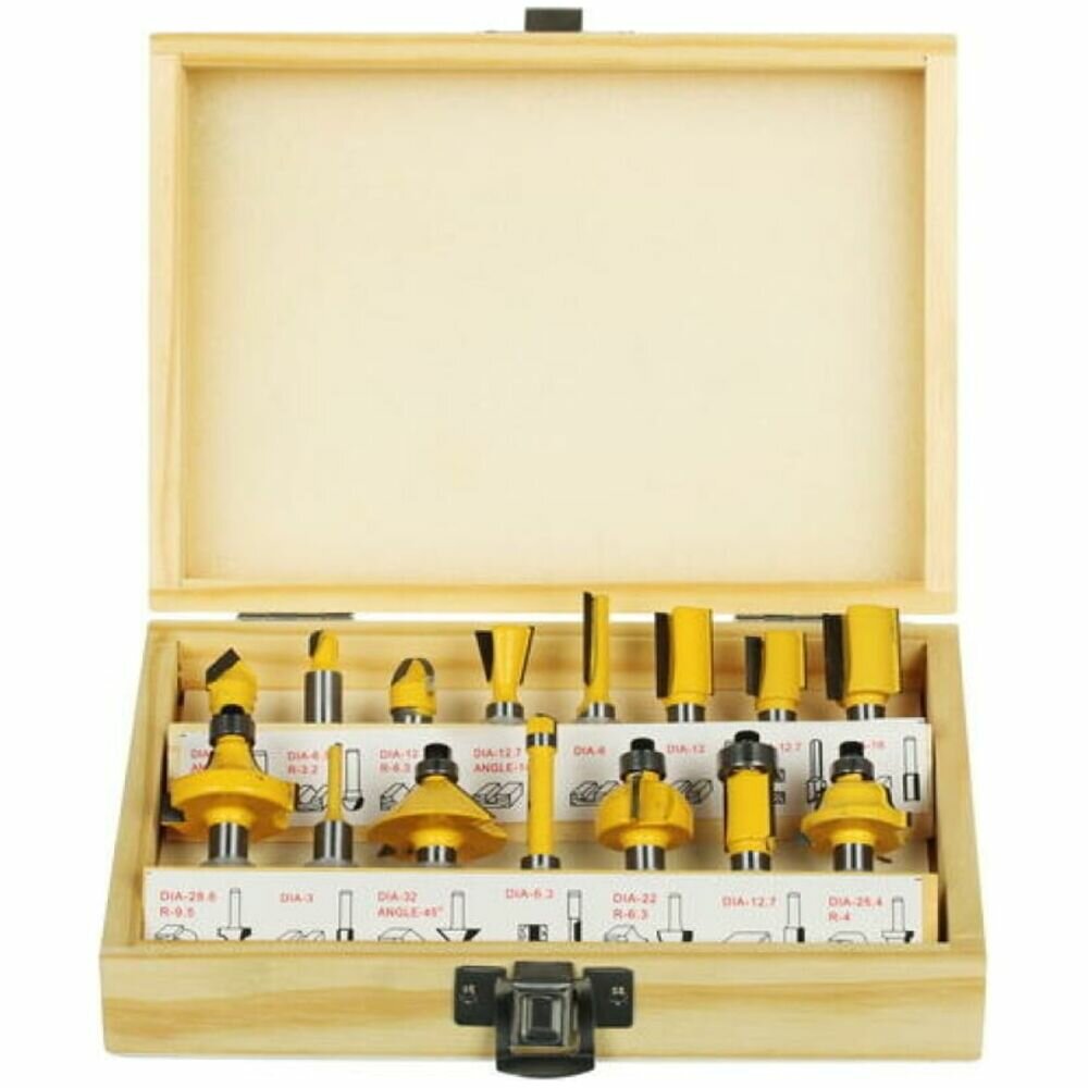 | Комплектация | 5 шт прямая пазовая 3,6,12,12.7,16 мм; 2 шт галтельная фреза R3.2 мм, R6.3 мм; 1 шт V-образная 90 град. 12.7 мм; 1 шт ласточкин хвост 12.7 мм; 1 шт панельная пилотная 6.3 мм; 1 шт обгонная 12.7 мм; 1 шт калевочная R9.5 мм; 1 шт кромочная 45 град. 32 мм; 1 шт пазовая R6.3 мм; 1 шт фасочная R4 мм; 1 шт шестигранный ключ 2,5 мм; деревянный кейс. |