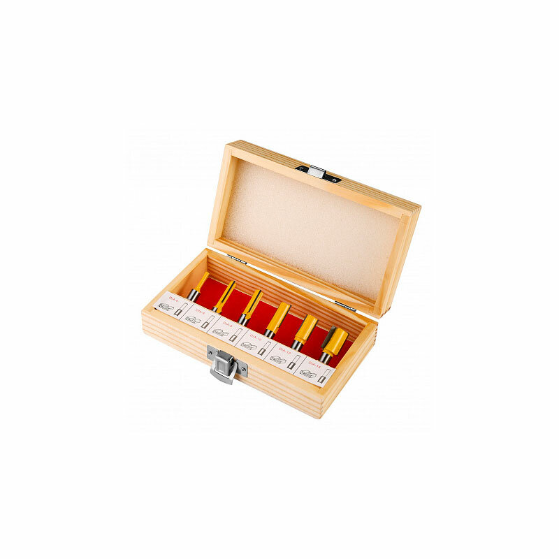 | Комплектация | 6 шт пазовая прямая фреза: 4, 6, 8, 10, 12, 14мм; деревянный кейс. |