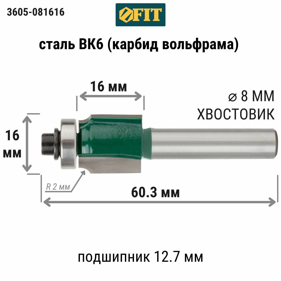 Фреза FIT кромочная калевочная с подшиником DxHxL=16х16х60,3мм(3605-081616)