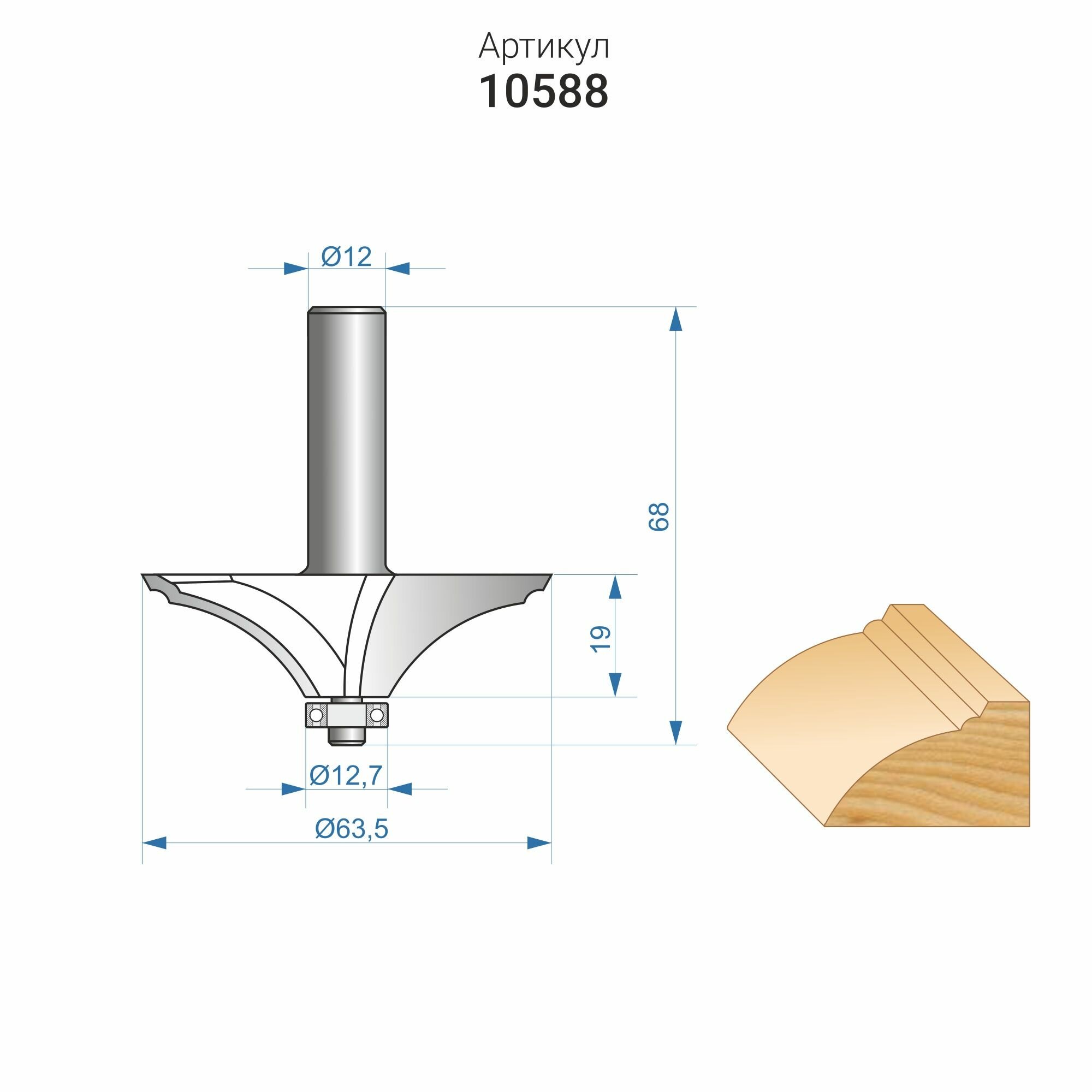10588 Фреза фигирейная горизонтальная (63.5х19 мм; хвостовик 12 мм) по дереву Энкор