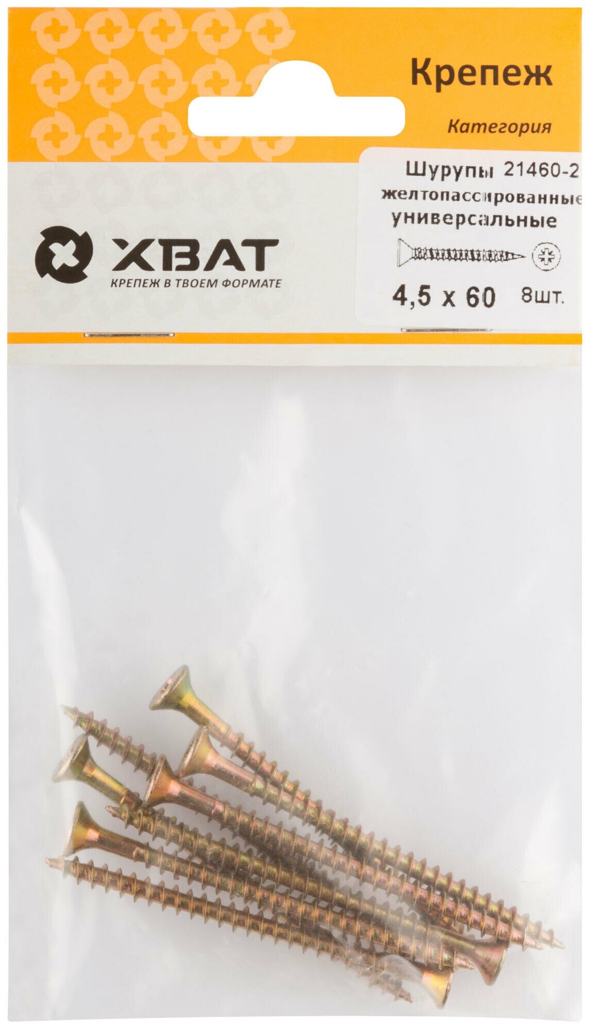 Шурупы желтопассированные, универсальные 4.5 х 60 ( фасовка 8 шт.)
