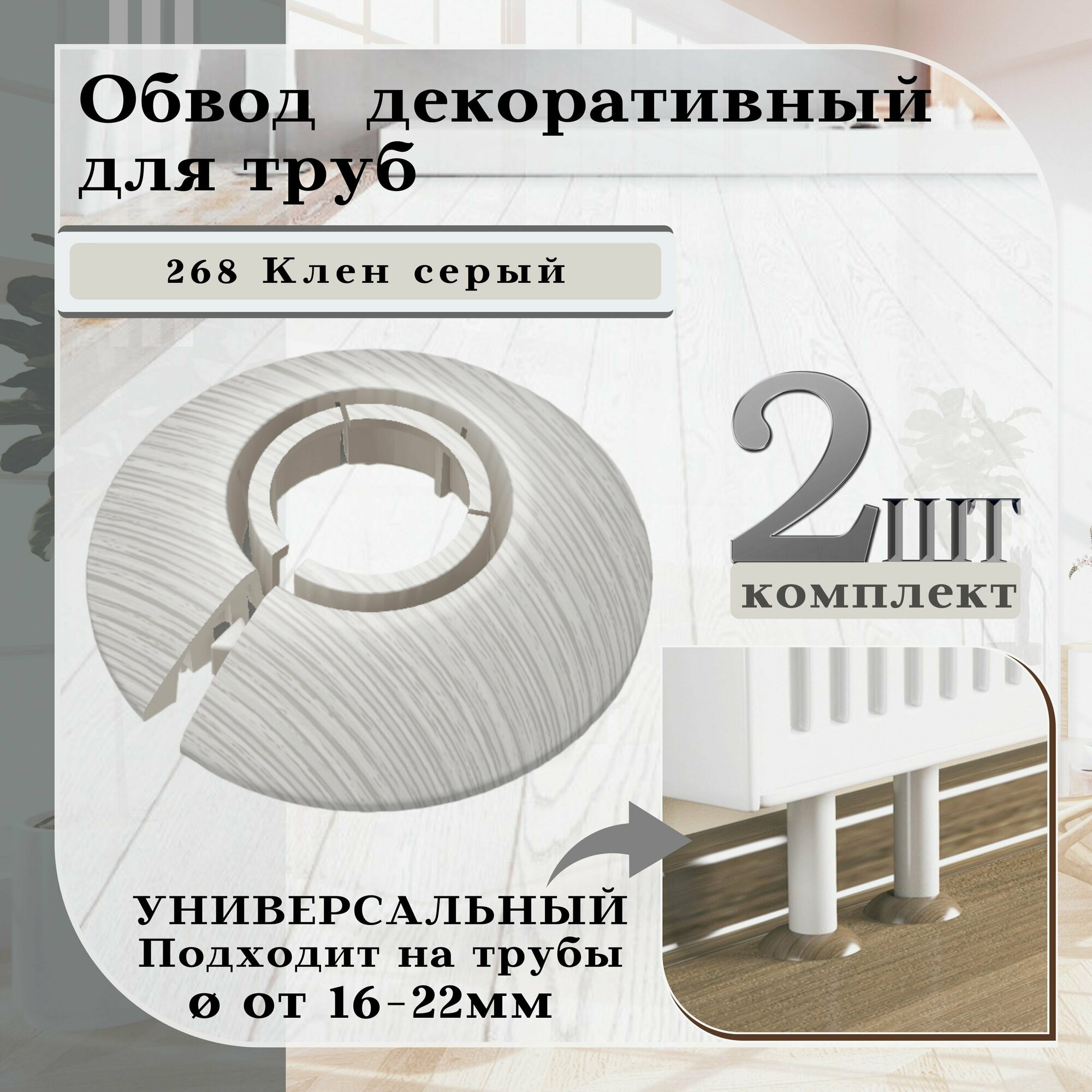 СохранитьОбвод универсальный для труб Ф16-22мм "Идеал" (2шт. во флоупак), 268 Клен серый интересное: