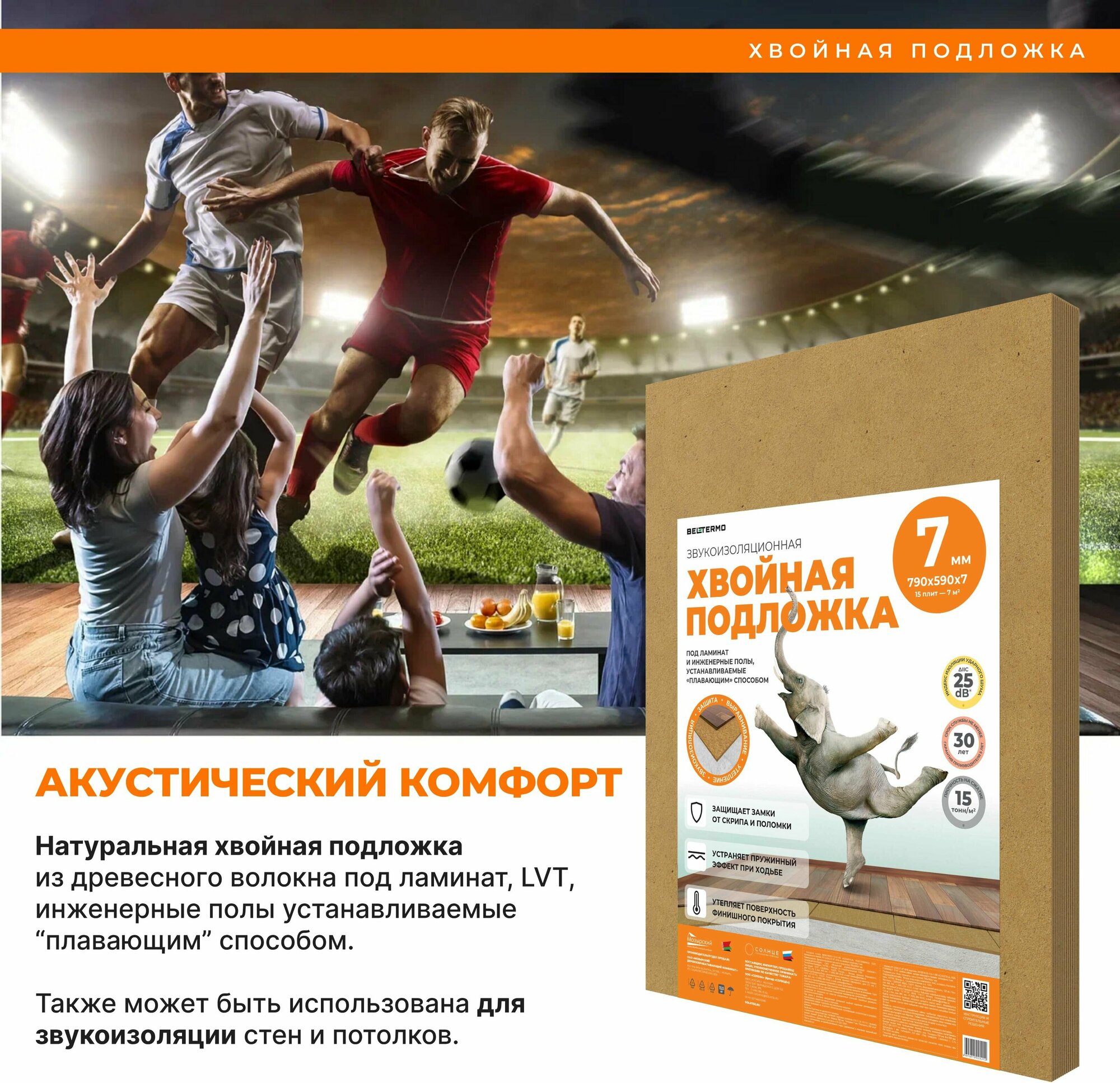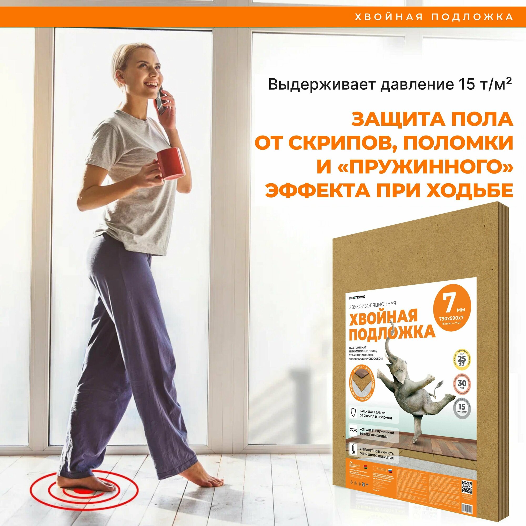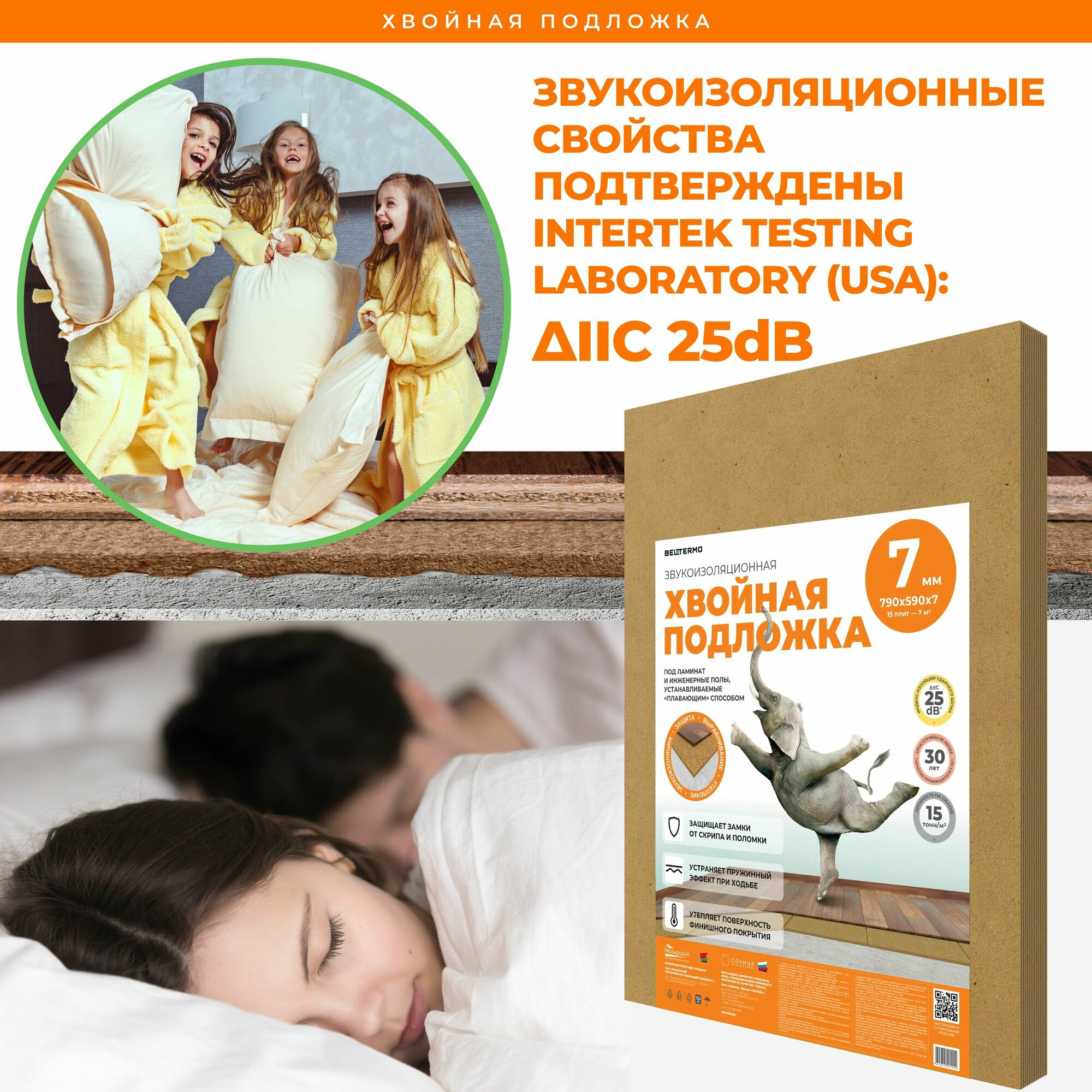 Звукоизоляционная хвойная подложка солнце 790x590x7 мм