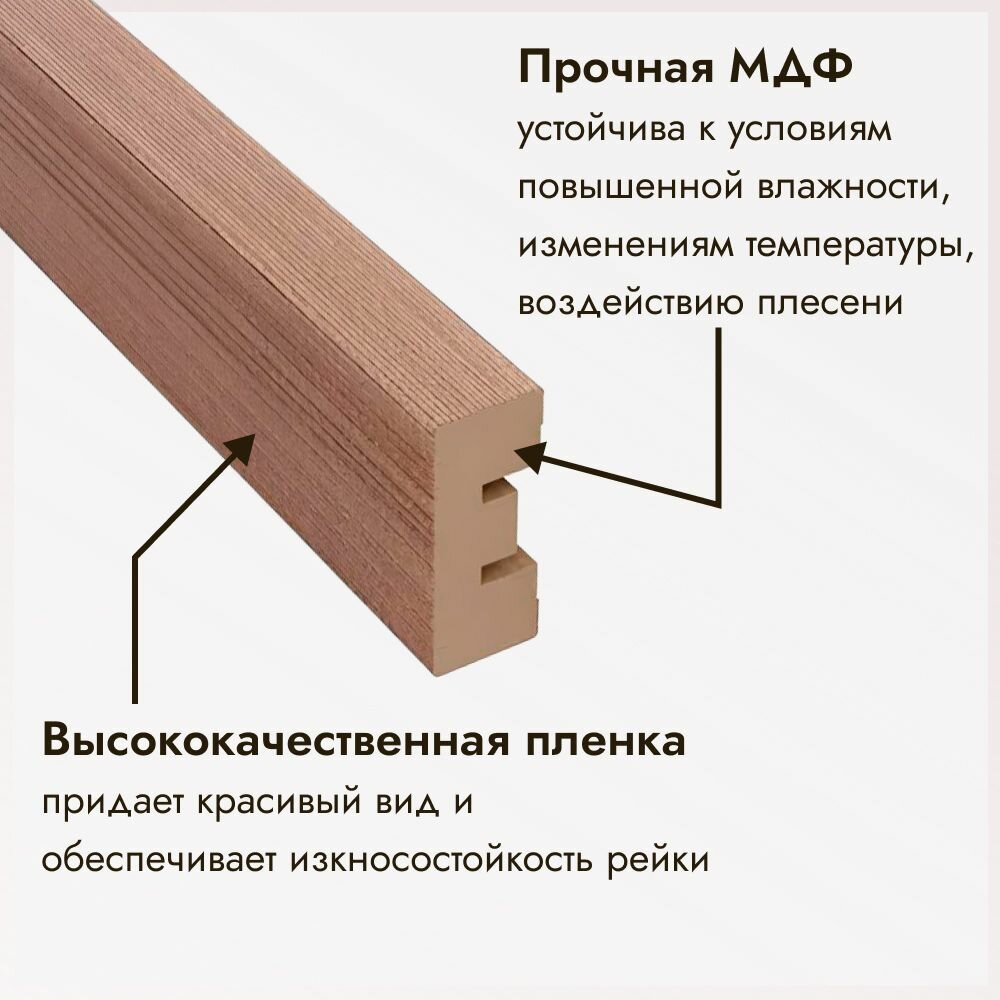 СохранитьРейка интерьерная МДФ для стен и потолков, с монтажной планкой, 40*16*2800мм, 10 штук, цвет Шимо Темный интересное: