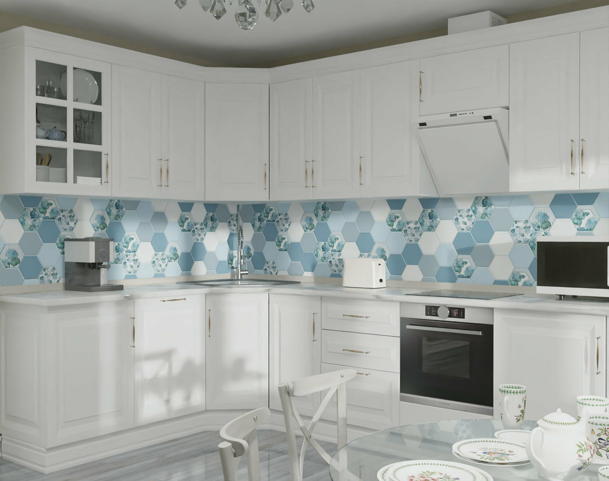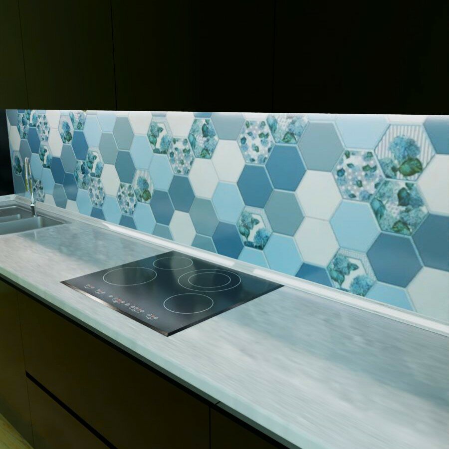 СохранитьФартук для кухни на стену из ПВХ Соты серо-голубые 3000*600мм фотопечать интересное: