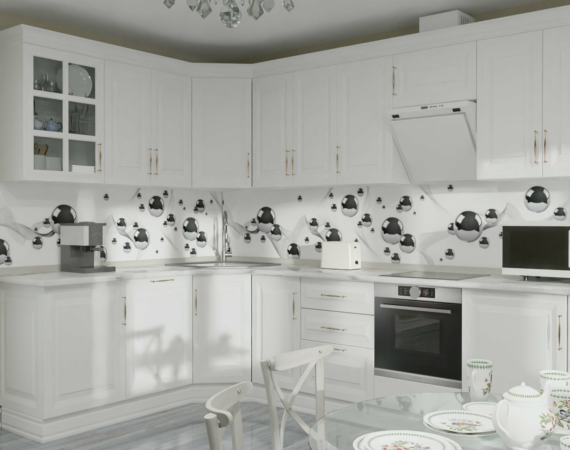 Купить Фартук для кухни на стену из ПВХ Стальной шар 3000*600мм фотопечать