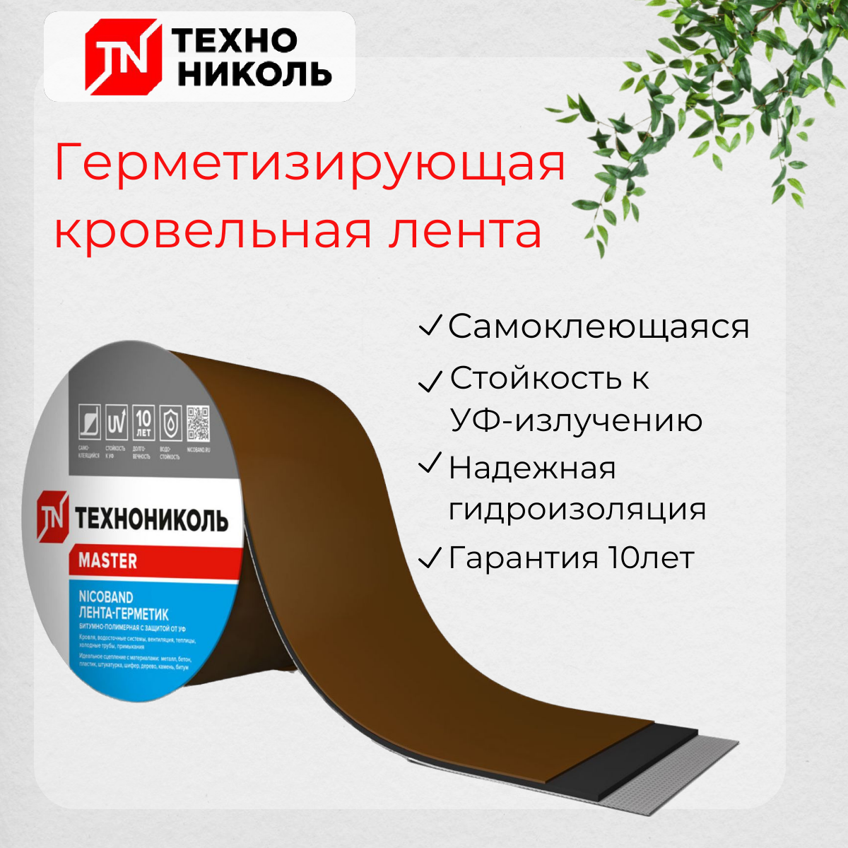 Герметизирующая лента Никобэнд ТЕХНОНИКОЛЬ (Nicoband) самоклеющаяся лента-герметик, коричневый 3 м х 5 см