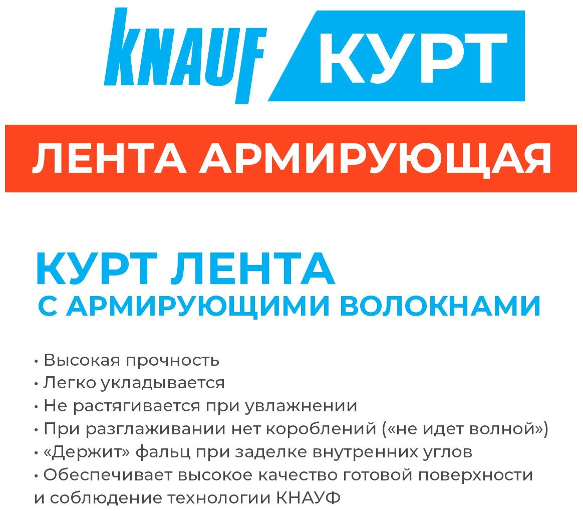 Лента бумажная для швов ГКЛ Knauf Курт 52 мм 75 м с армирующими волокнами интересное: