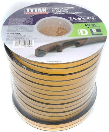 Купить Уплотнитель для окон и дверей самоклеящийся TYTAN Professional D-профиль 9х7,5мм , 100м черный