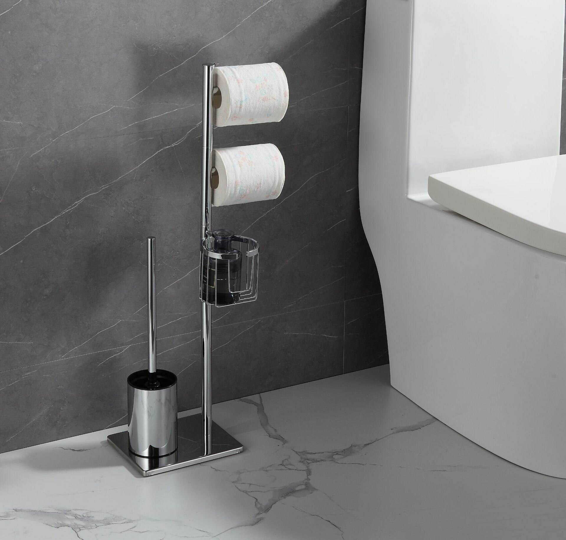 Туалетный ершик для унитаза BGL Silver Collection, напольный с держателем бумаги, хром
