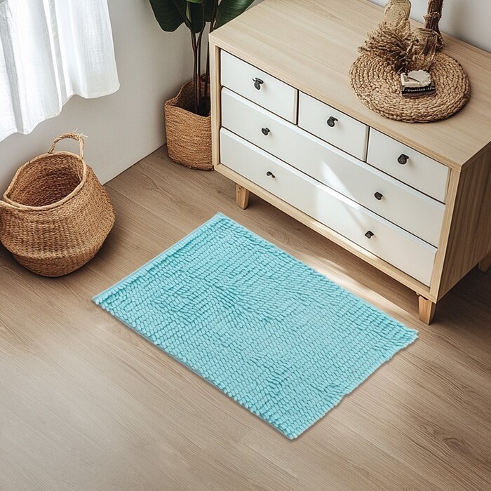 Коврик для ванной прямоугольный Доляна «Пушистик», 40×60 см, цвет лазурный