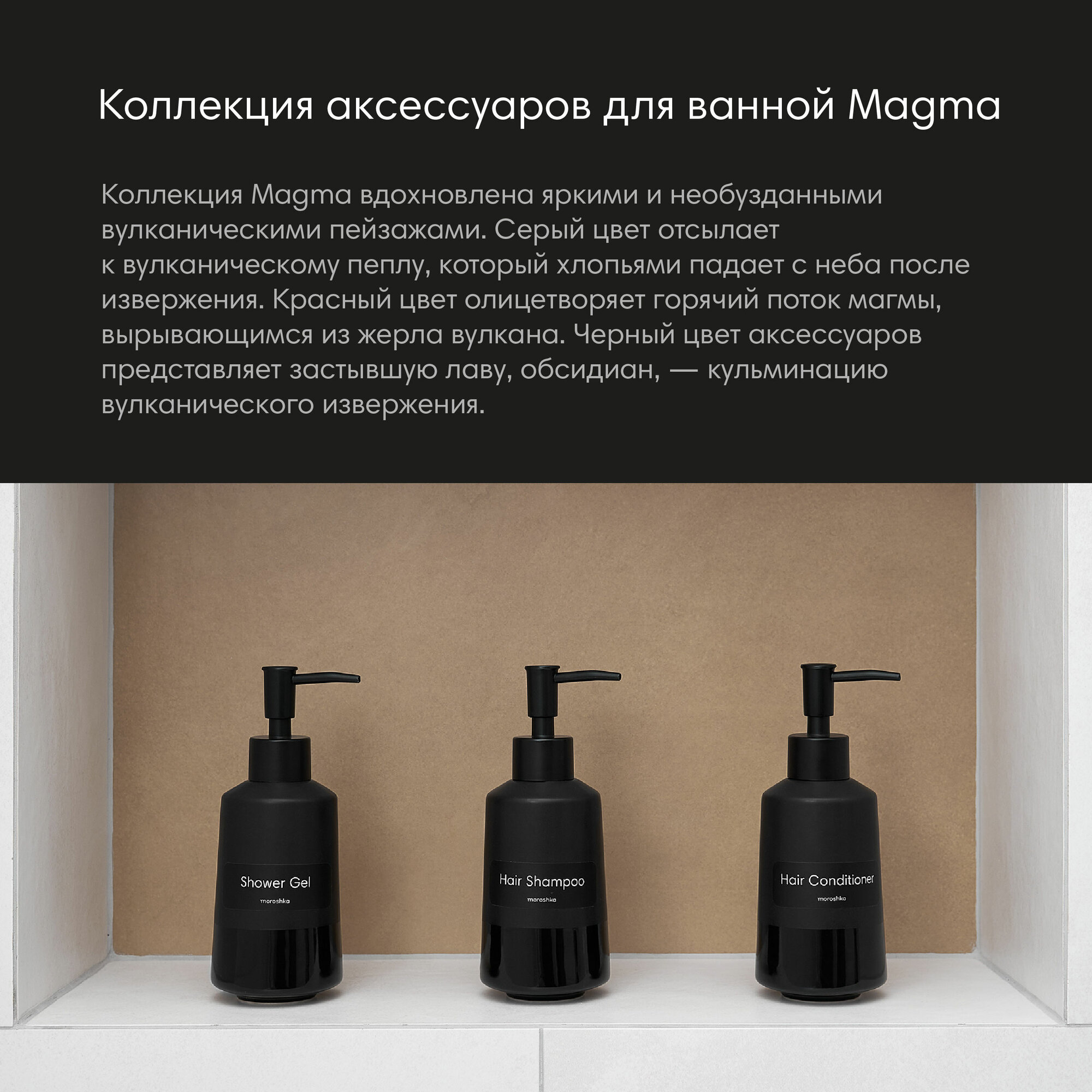 Дозатор для жидкого мыла Moroshka Magma, 7х7х17,8 см., цвет черный 10505414 интересное: