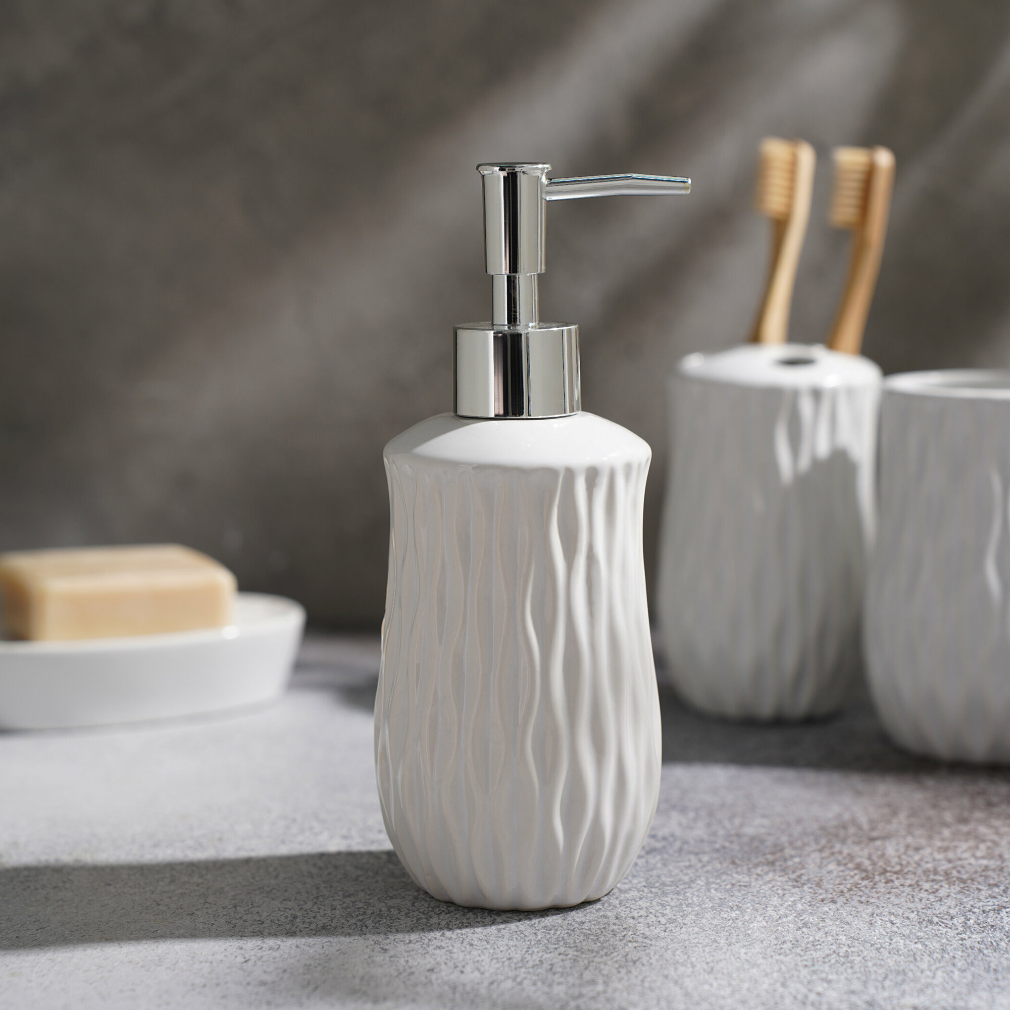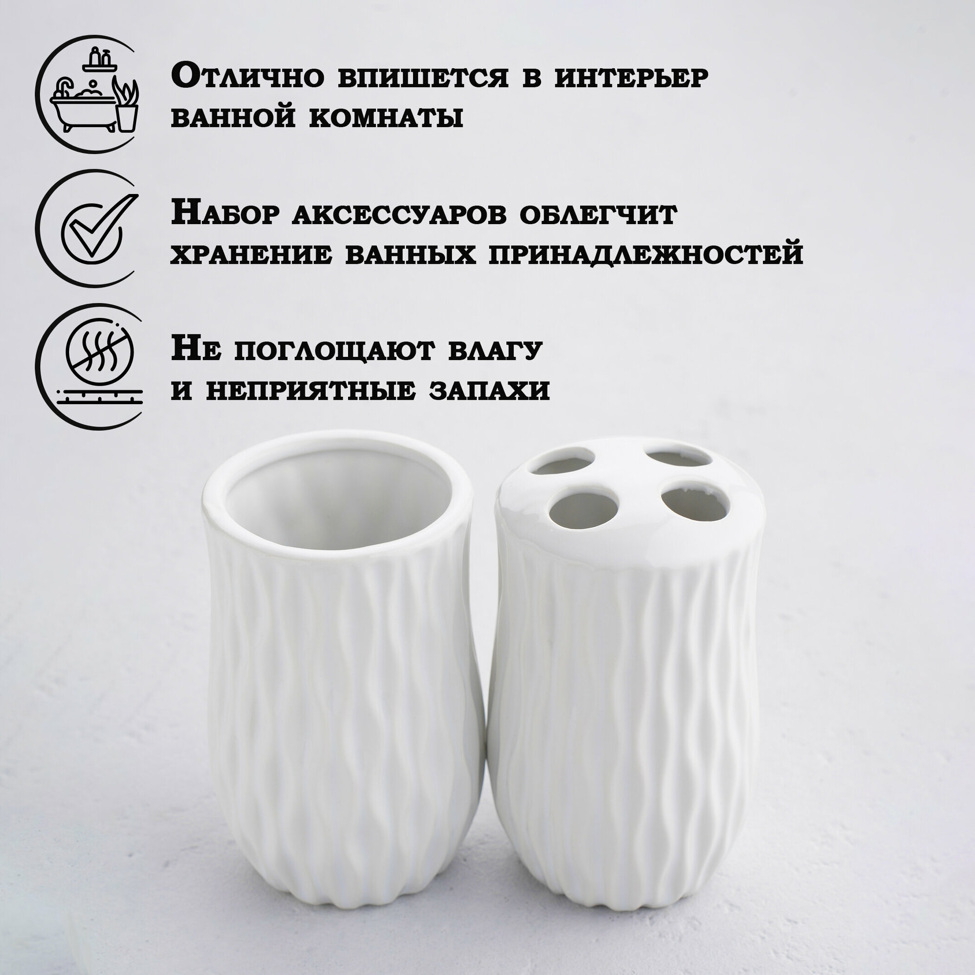 Набор аксессуаров для ванной комнаты керамический Доляна «Течение» дозатор 350 мл, мыльница, два стакана 300 мл, цвет белый