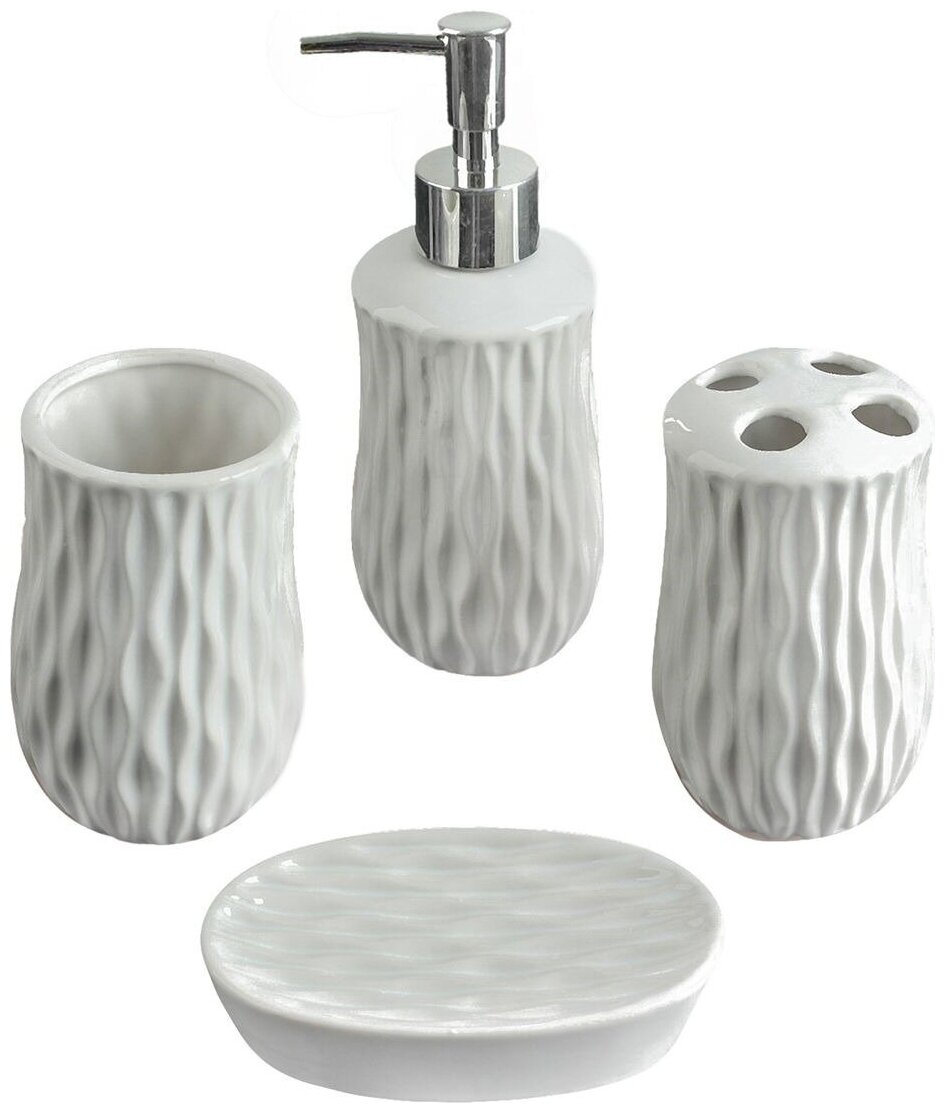 Набор из 4 белых аксессуаров для ванной комнаты «Течение»