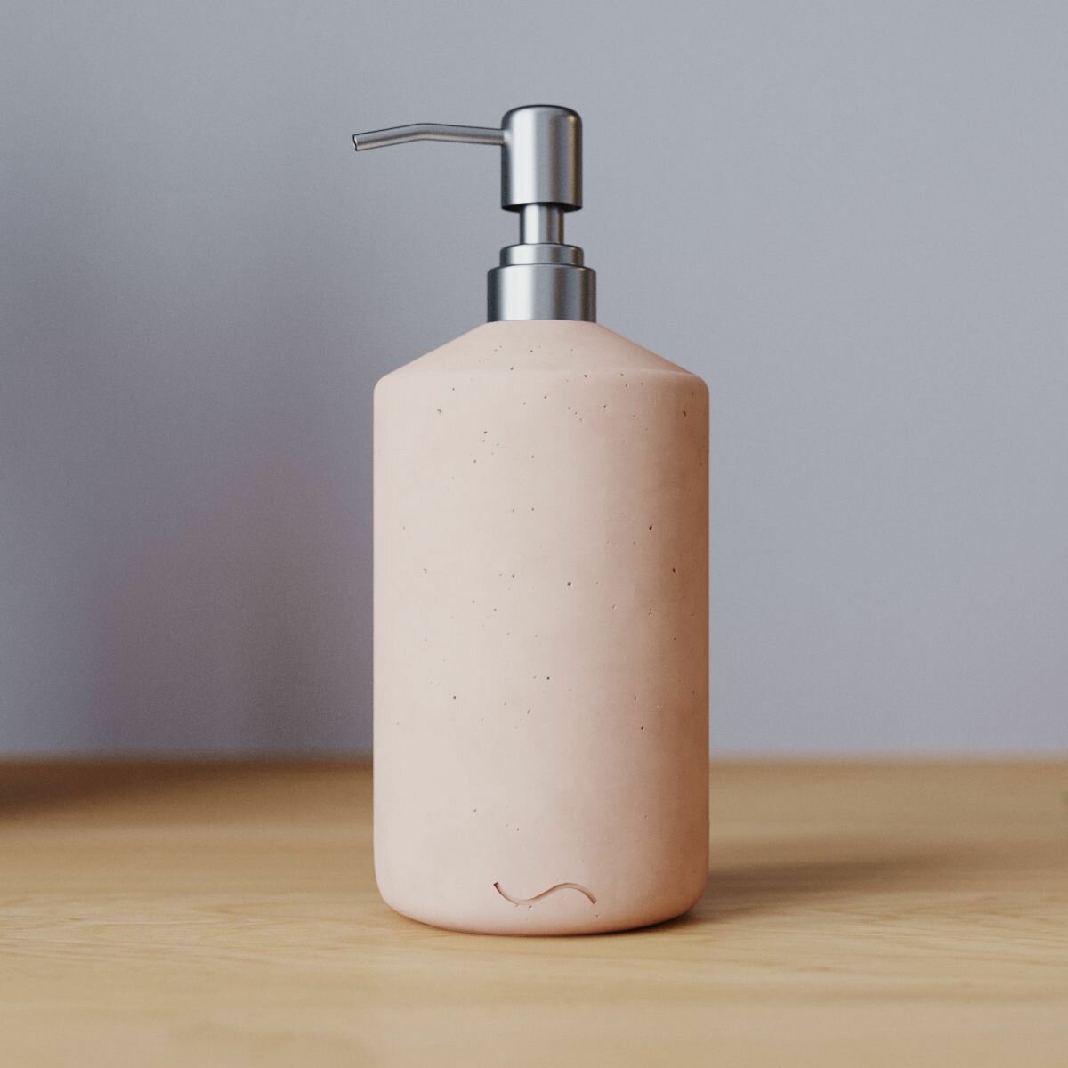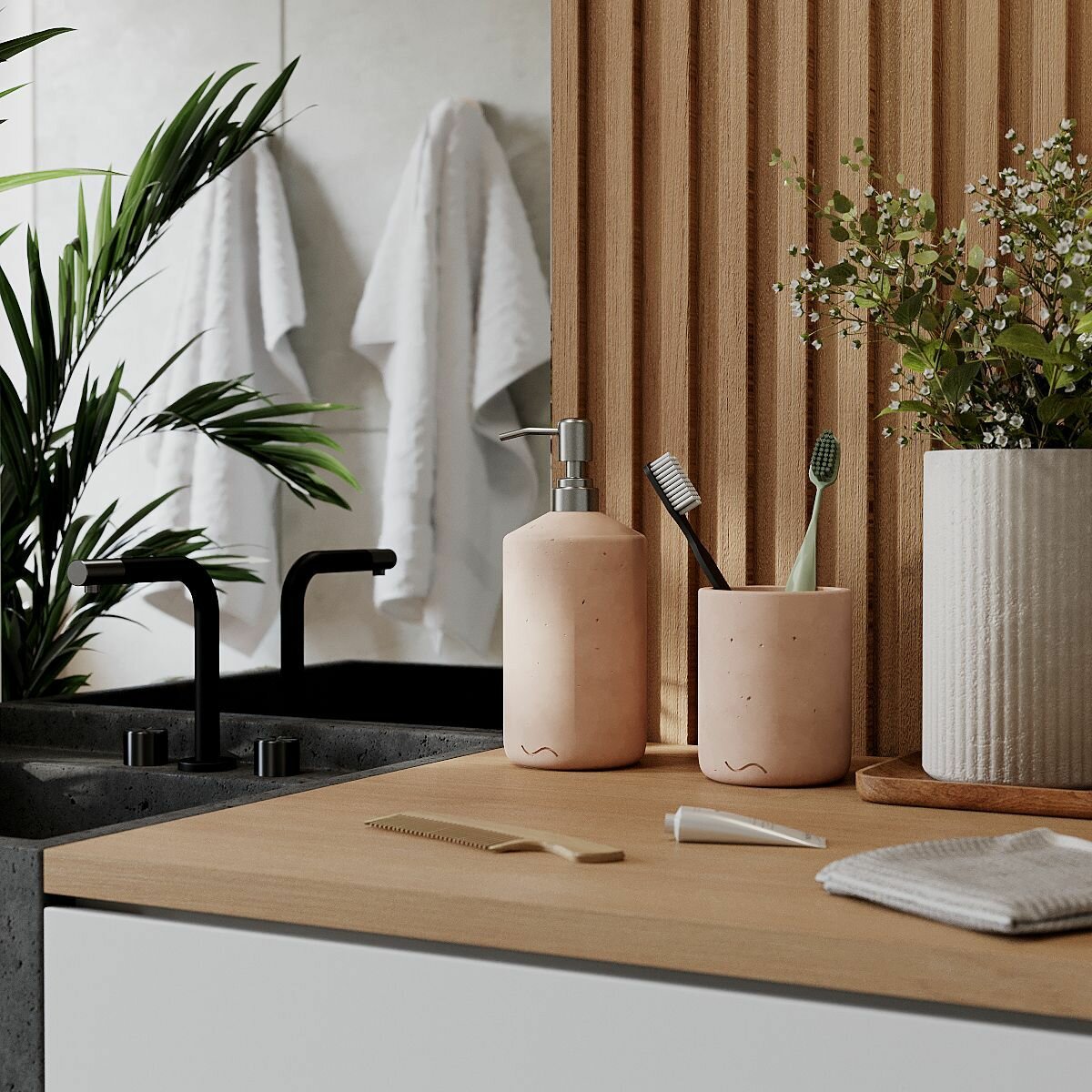 Набор для ванной комнаты Astrid 03 (стакан для щеток Astrid, дозатор Astrid для жидкого мыла с помпой металлик), бетон, розовый глянцевый