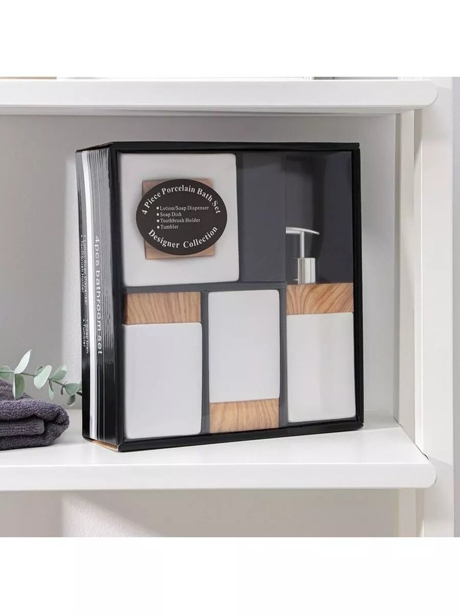 Наборы аксессуаров для ванной комнаты Natural Quatro, 4 предмета (дозатор 380 мл мыльница, 2 стакана) интересное: