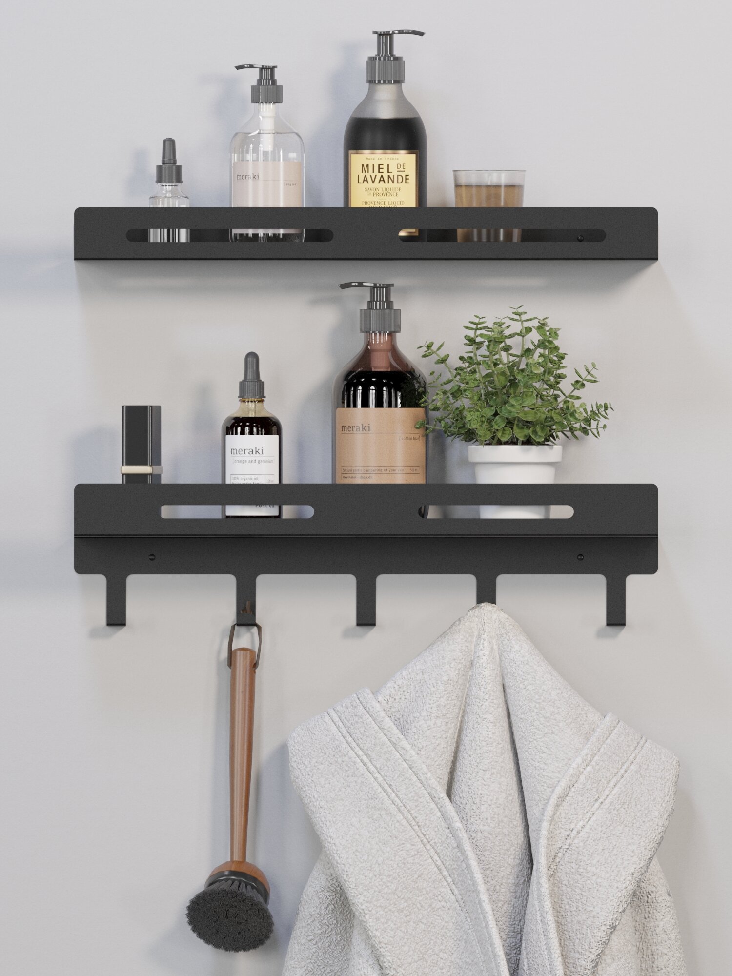 Купить Комплект полок для ванной и душа с крючками 2 шт. Цвет черный