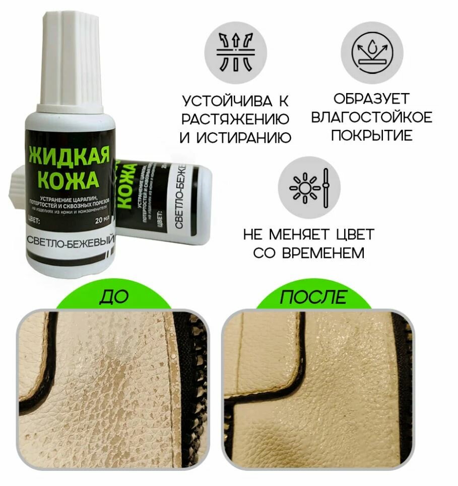 Жидкая кожа, восстановитель кожи (Темно-бежевый цвет) для ремонта мебели, авто, обуви и прочих кожаных изделий, без блистера, объем 20 мл