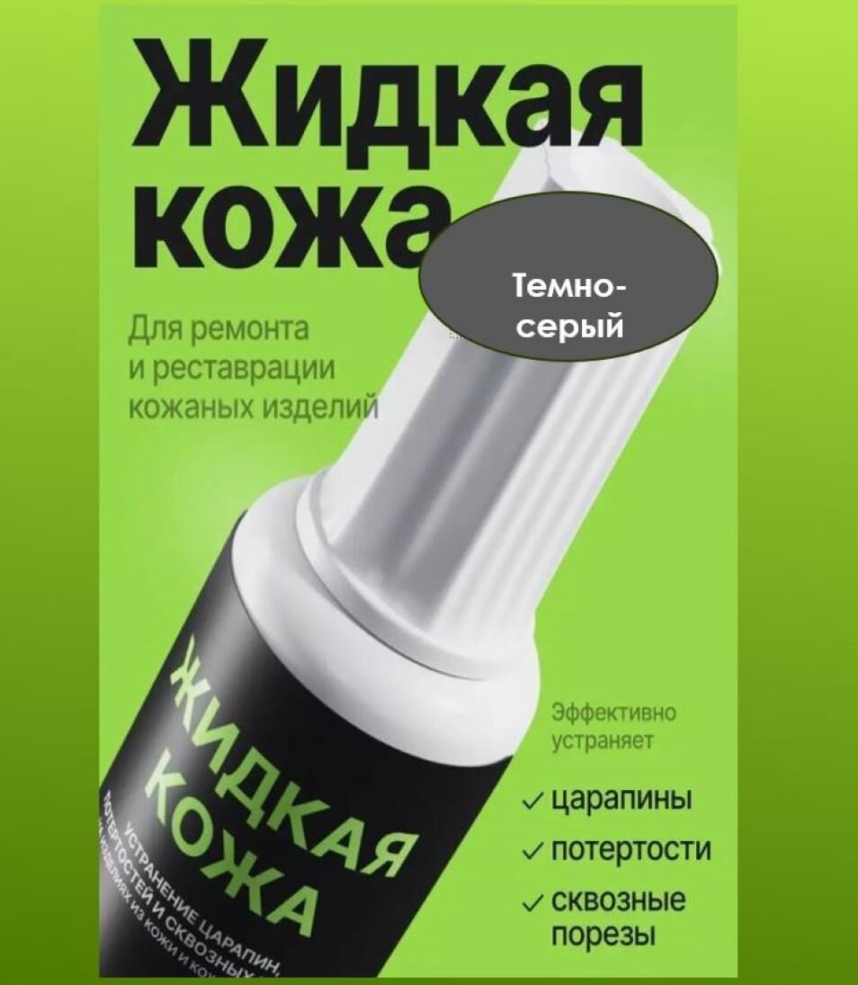 Жидкая кожа, восстановитель кожи (Темно-серый цвет) для ремонта мебели, авто, обуви и прочих кожаных изделий, без блистера, 20 мл