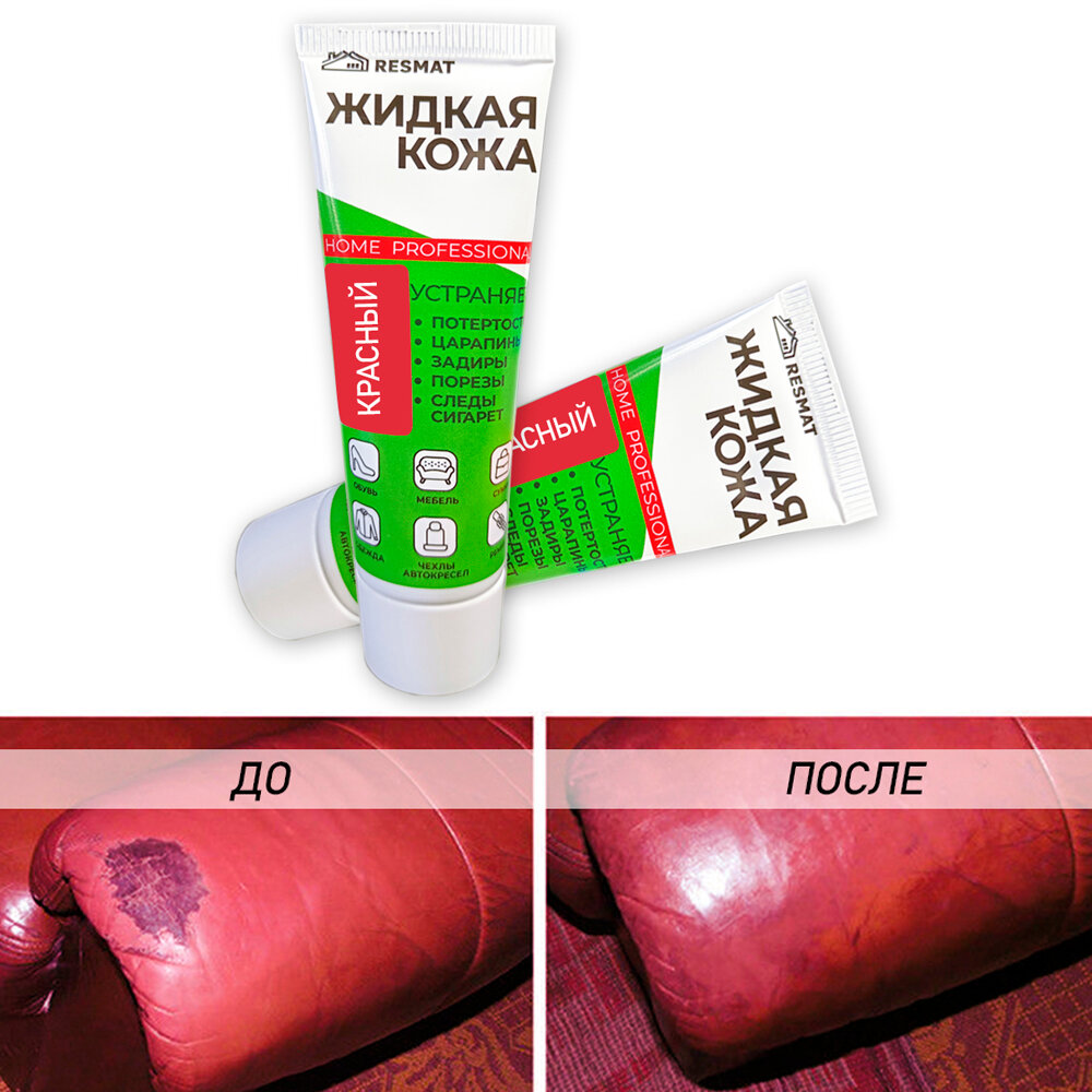 Жидкая кожа для мебели, одежды, восстановитель кожи Resmat 30 мл в тубе, бордовая