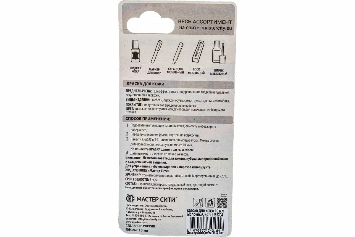 Мастер Сити Краска для кожи, флакон 10 мл (блистер), Молочный, 304 2185304