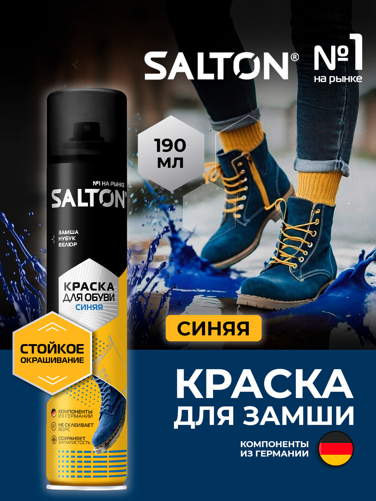 Ниже Вы можете прочитать отзывы на Краска синяя для обуви из замши, нубука и велюра одежды кожи спрей краситель уход, Salton 190 мл, ознакомится с подробными характеристиками, посмотреть интересные обзоры и фотографии на Краска синяя для обуви из замши, нубука и велюра одежды кожи спрей краситель уход, Salton 190 мл.