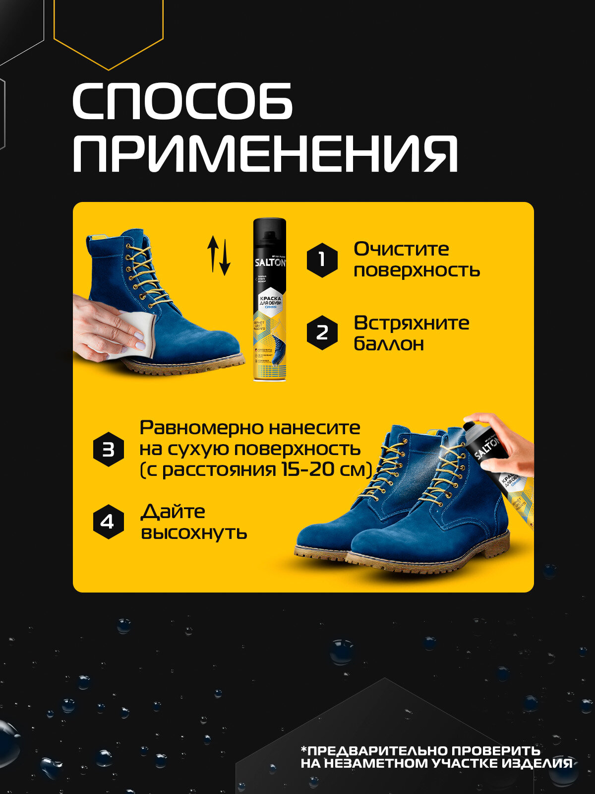 СохранитьКраска синяя для обуви из замши, нубука и велюра одежды кожи спрей краситель уход, Salton 190 мл интересное: