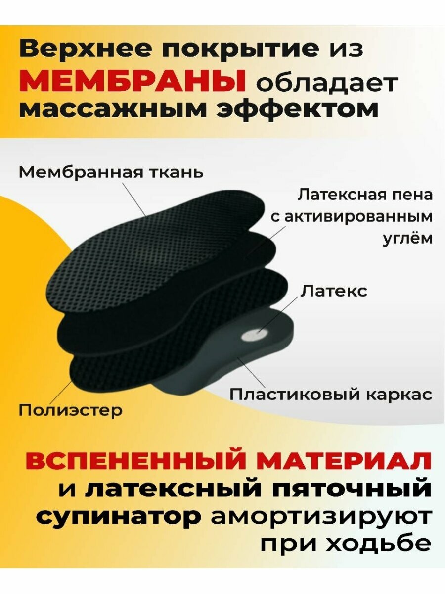 Стельки ортопедические TARRAGO Carbon Pro, мембрана / латекс / супинатор / пластиковый каркас, размер 41/42