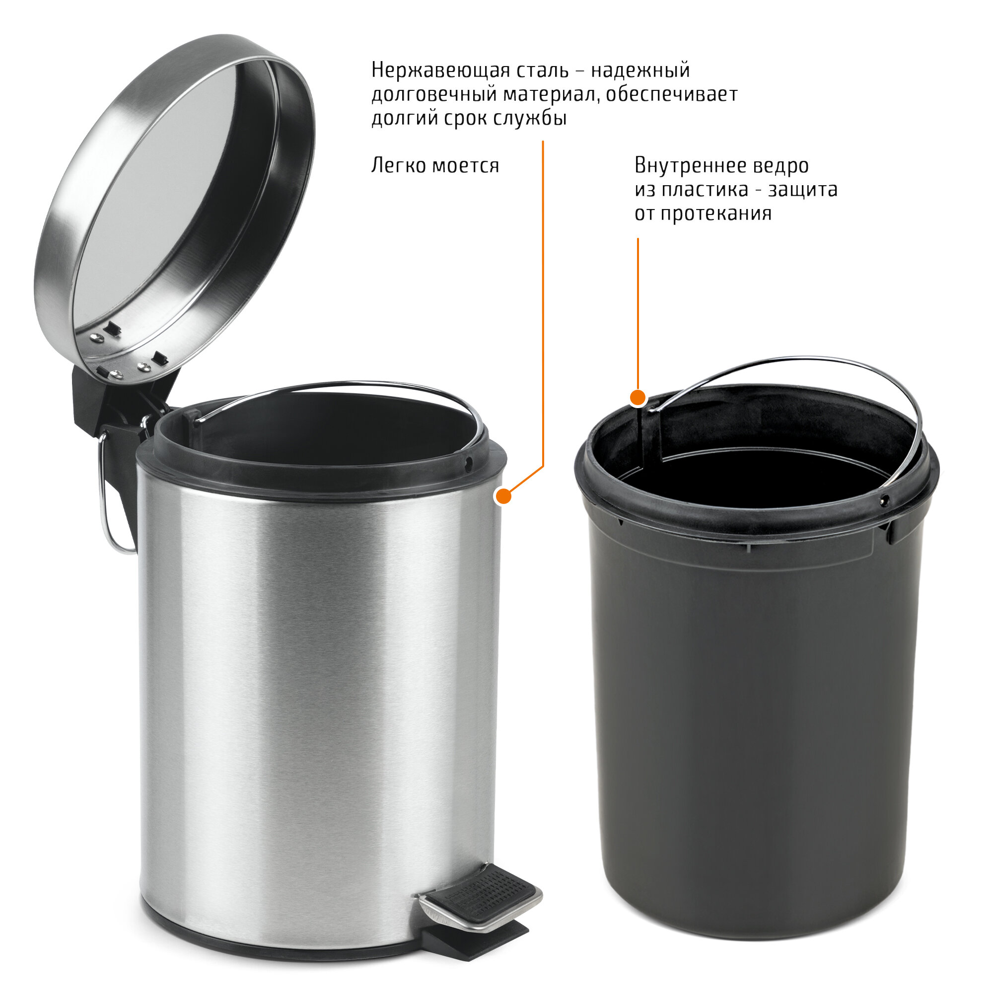 | Дополнительная информация | Ведро выполнено из нержавеющей стали, что обеспечит защиту от ржавчины и прослужит длительное время. Модель удобна при использовании и обладает педалью для открытия крышки. |
