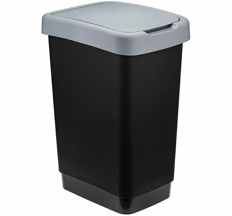 Ведро для мусора Idea Твин, 25 л, пластиковое, черное с серой крышкой